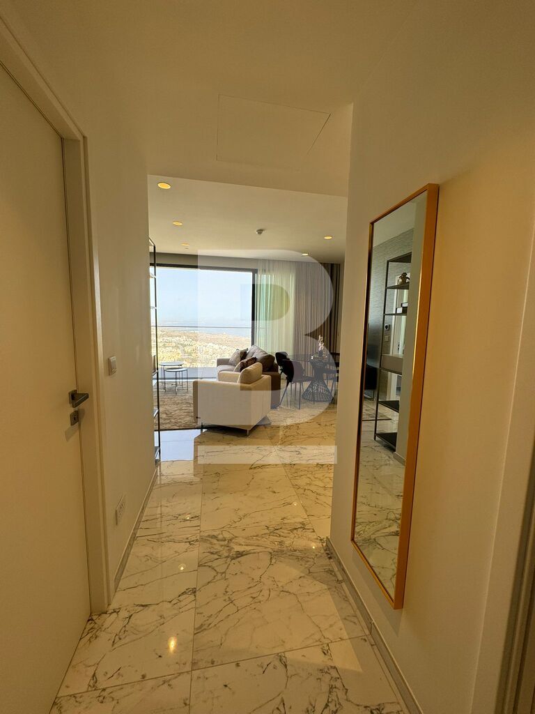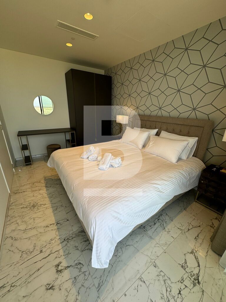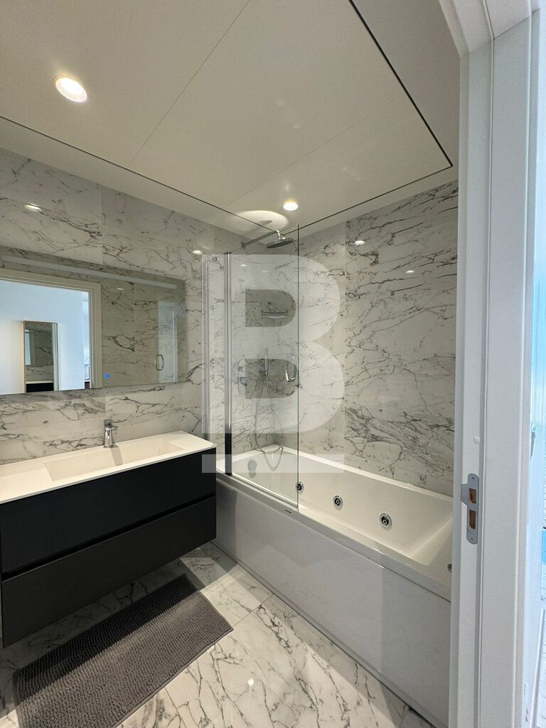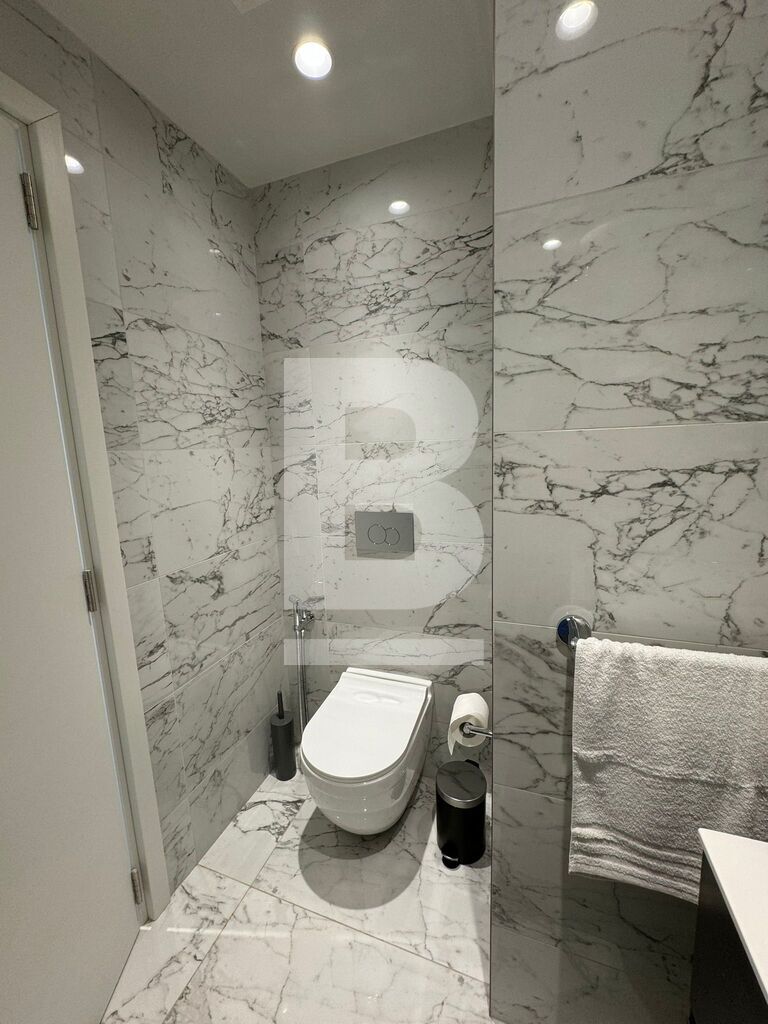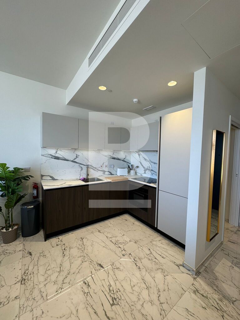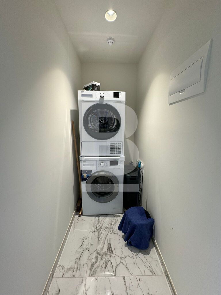 The apartment comes fully equipped with a built-in oven, washer/dryer, and triple-glazed windows. Residents enjoy access to luxury facilities, 24/7 concierge, and security.