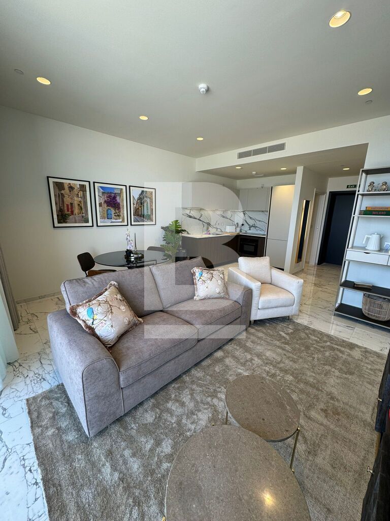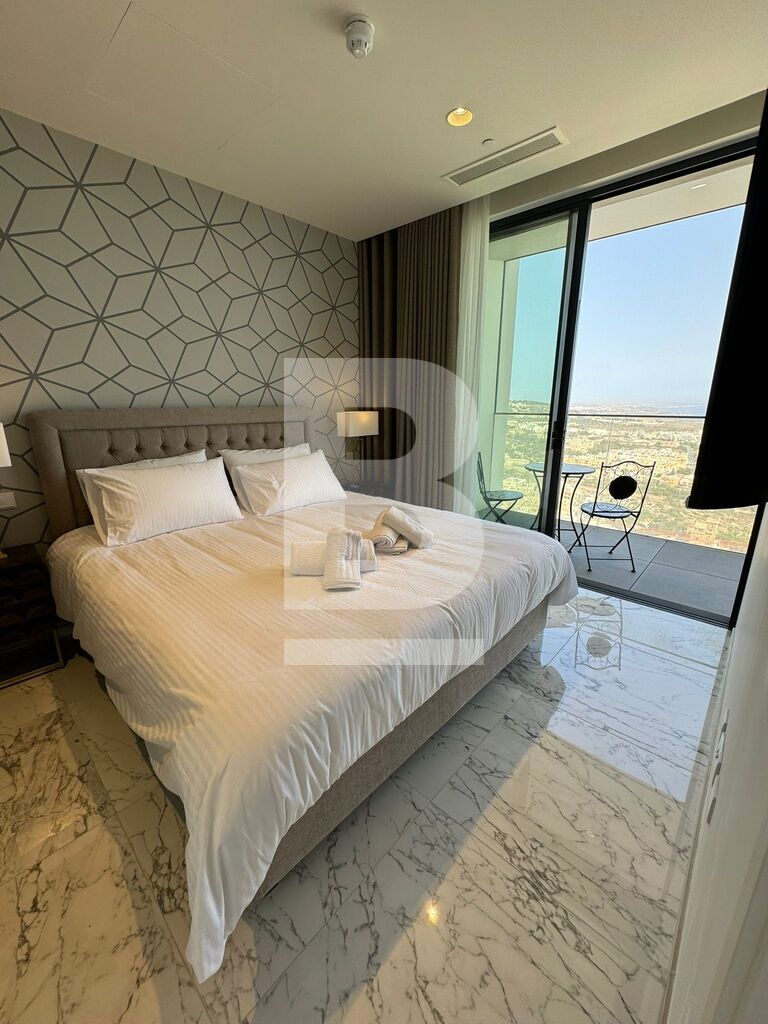 Located on the 26th floor of the iconic Mercury Towers, this stylish 60 sqm apartment offers stunning views of Gozo. It features a bright open-plan kitchen, dining, and living area that opens onto a large terrace, a double bedroom, and a modern bathroom.
