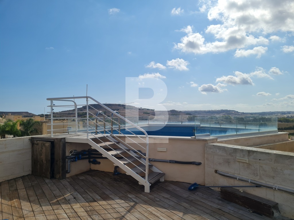 A Modern Gem in the Heart of Ghasri – A Rare Find! Discover refined countryside living in this beautifully finished 3 bedroom home, ideally located just a few steps from the charming Village Square of Ghasri. Designed with modern elegance and comfort in mind, this fully air-conditioned property features a dedicated study, 3 berooms and 3 bathrooms, two of which are ensuite and a guest toilet. The spacious open plan kitchen, living and dining area with a wood burning stove, is bathed in natural light and offers stunning views of the surrounding countryside from its large balcony, creating a serene and inviting atmosphere. A rooftop south facing pool and terrace provide the ultimate private retreat, ideal for entertaining or unwinding under the Gozitan sun. With a sleek, contemporary finish throughout and a pet-friendly policy, this home combines style, practicality, and warmth in one exceptional package. Whether you're seeking a peaceful escape or a vibrant village lifestyle, this residence offers the best of both worlds.