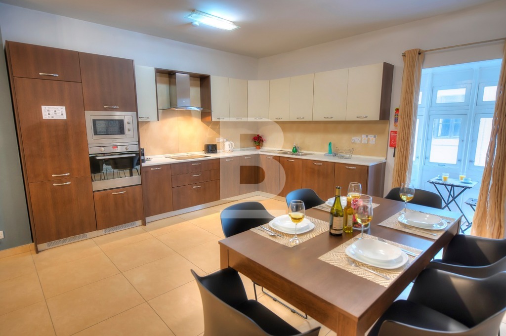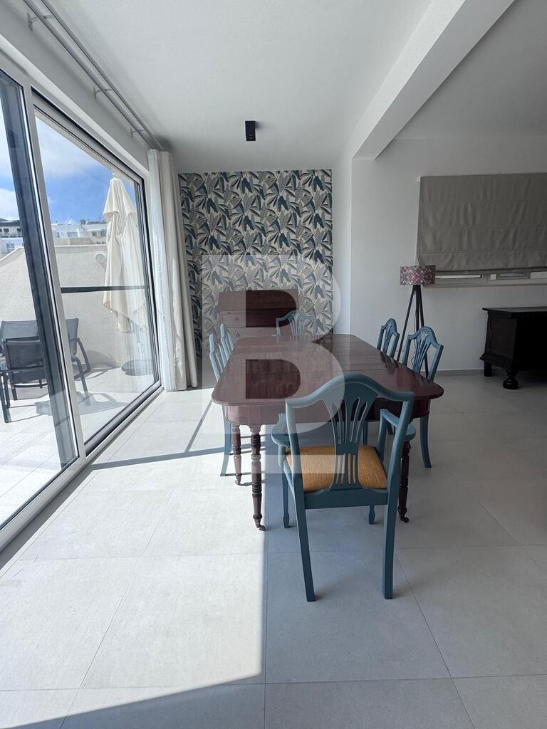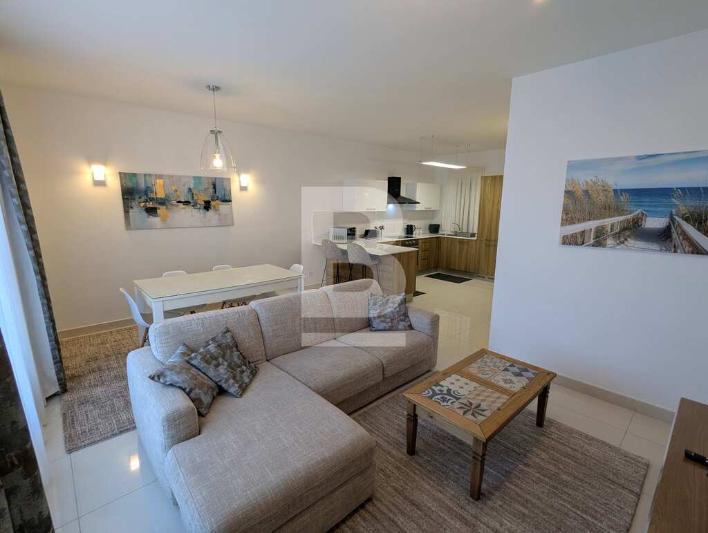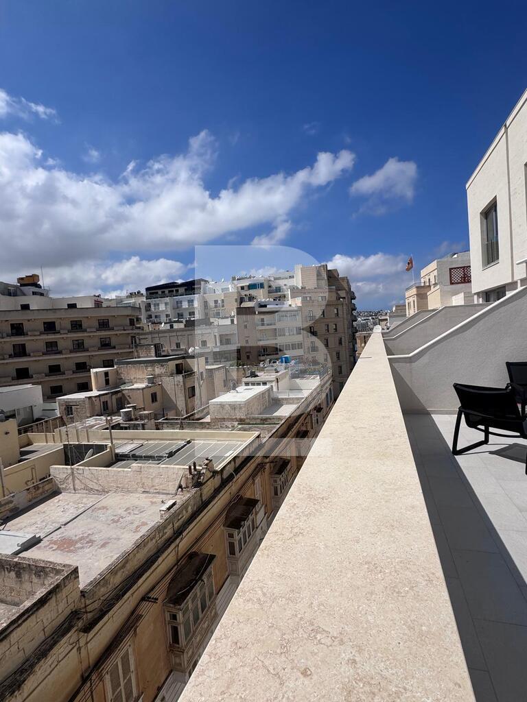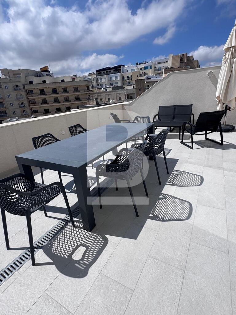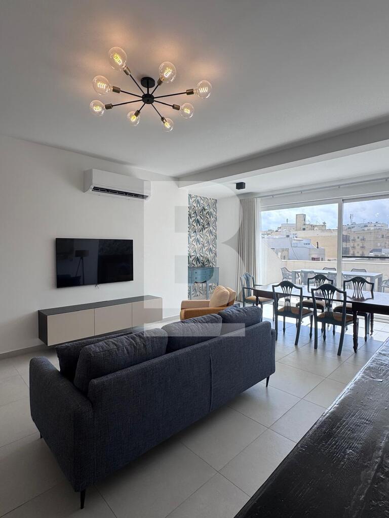 This exceptional two-bedroom residence, set on the fourth floor of a prestigious Sliema development just off the seafront, offers refined living in one of Malta’s most coveted locations. Designed with comfort and style in mind, the apartment features an elegant open-plan kitchen, living and dining area that flows seamlessly onto a spacious terrace, complete with outdoor lounge and dining furnishings — perfect for sophisticated entertaining or relaxing al fresco. The property comprises two luxurious bathrooms, including a main en-suite, and is finished to the highest standards with tasteful, contemporary furnishings throughout. A private garage space further enhances the convenience of this home, making it a rare opportunity to enjoy a lifestyle of elegance and ease in the heart of Sliema.