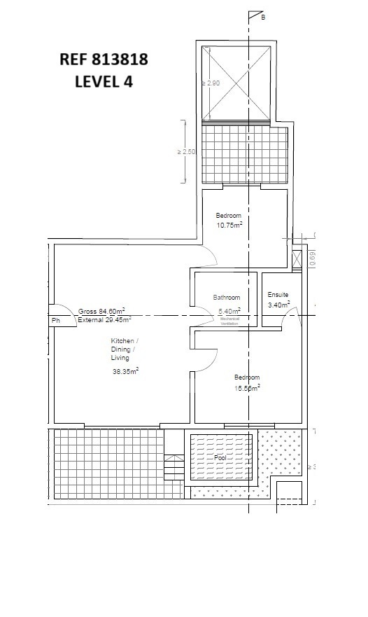 Bright and airy, 4th floor penthouse within a beautiful corner block of 8 currently in construction. This 115 sqm property comprises a kitchen/living/dining with a walkout onto a spacious terrace with space for a pool, 2 double bedrooms - master with ensuite, guest bathroom, and rear terrace. Property is offered beautifully finished except for bathrooms and internal doors. Completion expected end 2026. Lock up garages measuring 20 sqm - 45 sqm optional. Freehold.