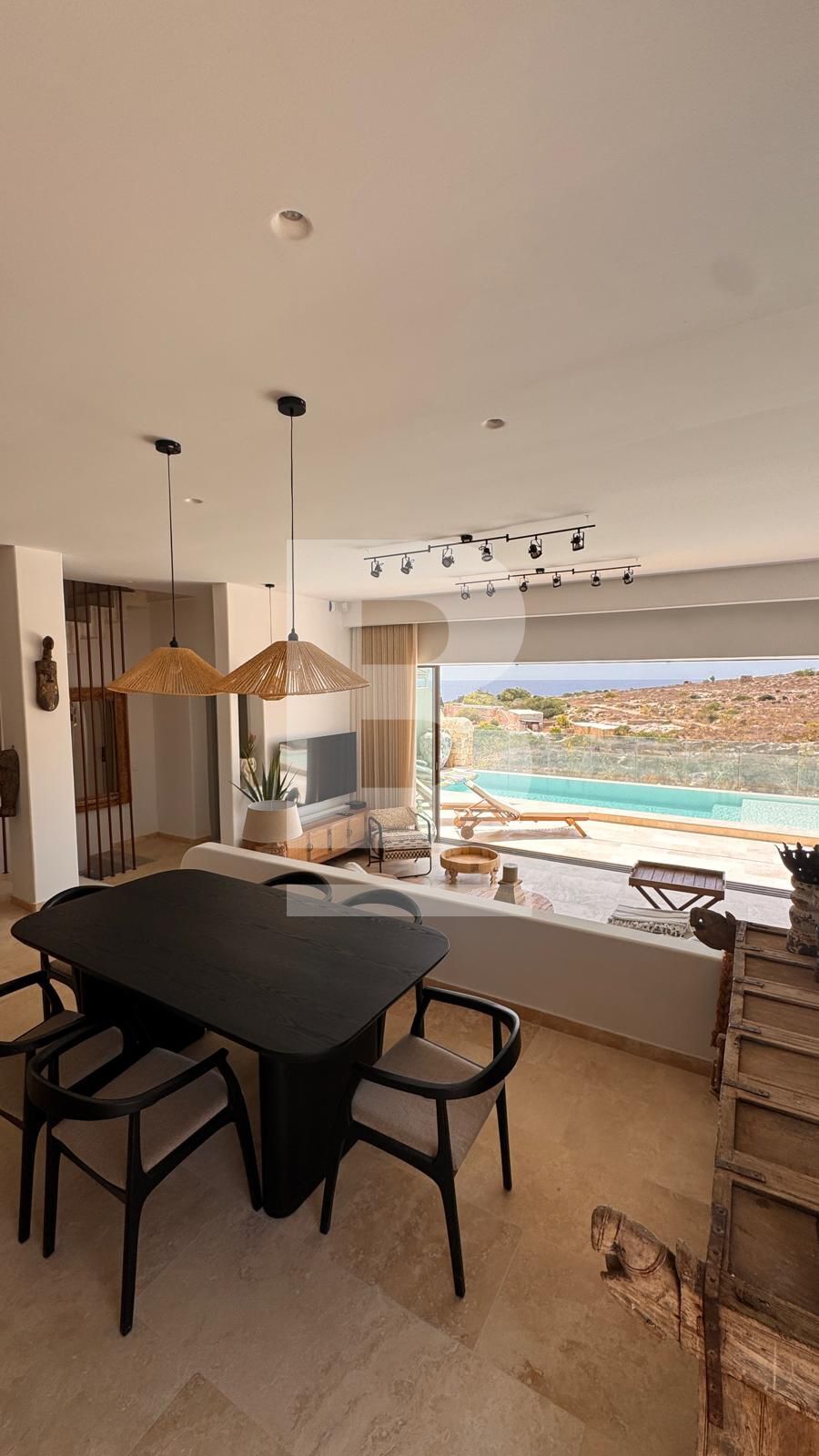 The ground floor boasts spacious open-plan living and dining areas, ideal for entertaining or relaxing. Large openings create a seamless indoor-outdoor flow, offering open country views and distant sea views while flooding the space with natural light.