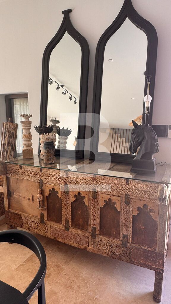 Outside, a private swimming pool and a beautifully designed outdoor area with an ethnic touch create the perfect setting for alfresco dining and relaxation.