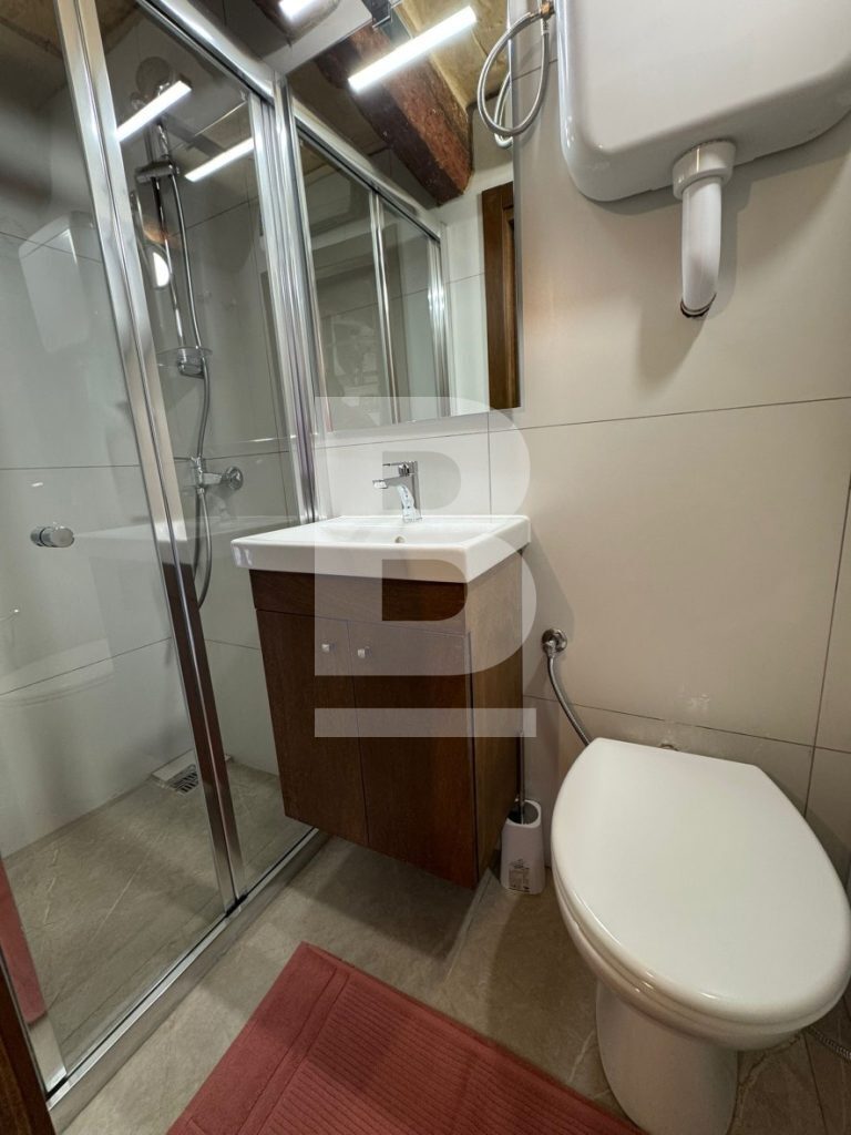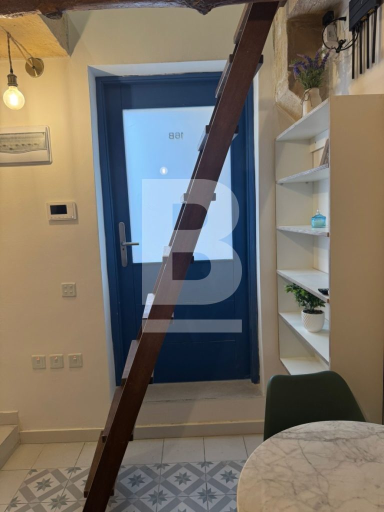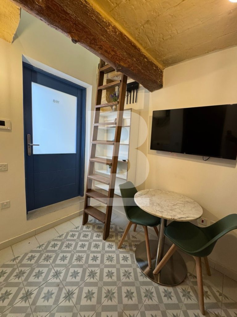 A recently refurbished studio apartment is available for long let in the heart of the village core. Finished to very high standards, the apartment features stylish, custom-made furniture and has been thoughtfully designed to cater to everyday needs. The open-plan layout includes a kitchen, living, and dining area, with a double bed positioned at an intermediate level, comfortably sleeping up to two people. With an internal and total area of 19 square meters, the space is compact yet efficiently arranged. Just a two-minute walk from St. Paul’s Parish Church, the apartment is ideally located within easy reach of daily amenities such as a bakery, cafés, restaurants, a grocery shop, and a pharmacy—all within a ten-minute walk.