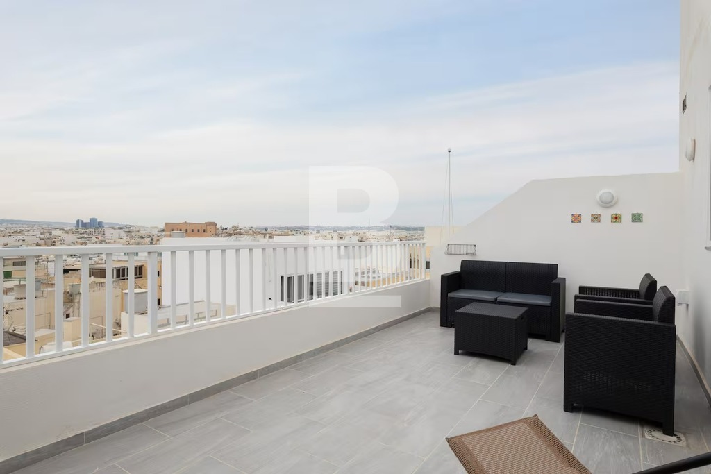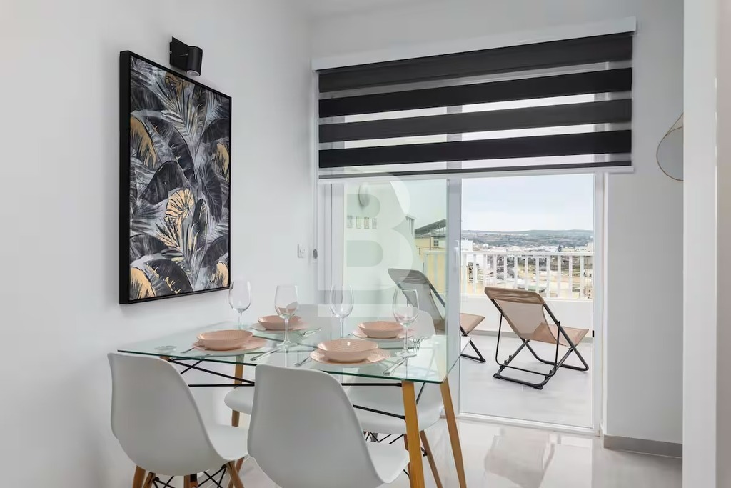 The penthouse features a bright open-plan living area, a main bedroom with a king-size bed and private ensuite, and a sofa bed in the living room that can accommodate two additional guests, comfortably sleeping up to four people. Guests can also enjoy free high-speed Wi-Fi and a Smart Android HDTV for added convenience and entertainment. Whether you're visiting for business or leisure, this centrally-located penthouse provides the ideal base for your stay in Malta.