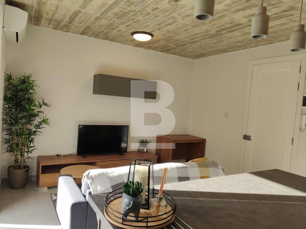 Modernly Finished 1 Double Bedroom Duplex Apartment in San Gwann. Consisting also of an en-suite bathroom, a guest toilet with a 2-in-1 washing machine/tumble dryer, a fully equipped open plan kitchen, living and dining area including a dishwasher and 2 sizeable front balconies ( 1 on each storey ) flooding the apartment with natural light. The property is situated on the 1st floor served with a lift, fully air-conditioned and located close to all daily amenities and conveniences including; bus routes, LIDL Supermarket, churches, schools, cafe's, electronic stores, snack bars and more...