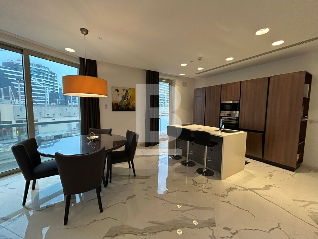 A beautifully finished and fully furnished corner apartment within one of Malta’s most prestigious lifestyle developments, offering residents access to a communal pool, landscaped gardens, a shopping arcade, and a variety of restaurants and cafés. Designed for both comfort and style, the layout features an elegant entrance hall leading to a bright open-plan kitchen, living and dining area, opening onto a generous corner terrace with picturesque views of Tigné Piazza. The apartment includes a master double bedroom with en-suite, a guest bathroom, and comes fully equipped with an advanced HVAC system, motorized blinds, and underfloor heating in the bathroom. Set in a prime location, this exceptional property blends modern luxury with everyday convenience, making it an outstanding choice for discerning homeowners or a valuable investment opportunity.