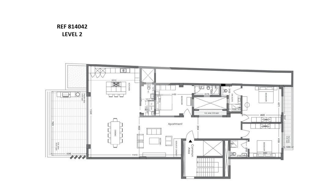 This Three bedroom Apartmentenjoys direct sea views from the 35sqm terrace. large open plan Kitchen living dining of a 125sqm. The three double bedrooms all with en-suite Complementing the property are a study , laundry and plenty of storage.