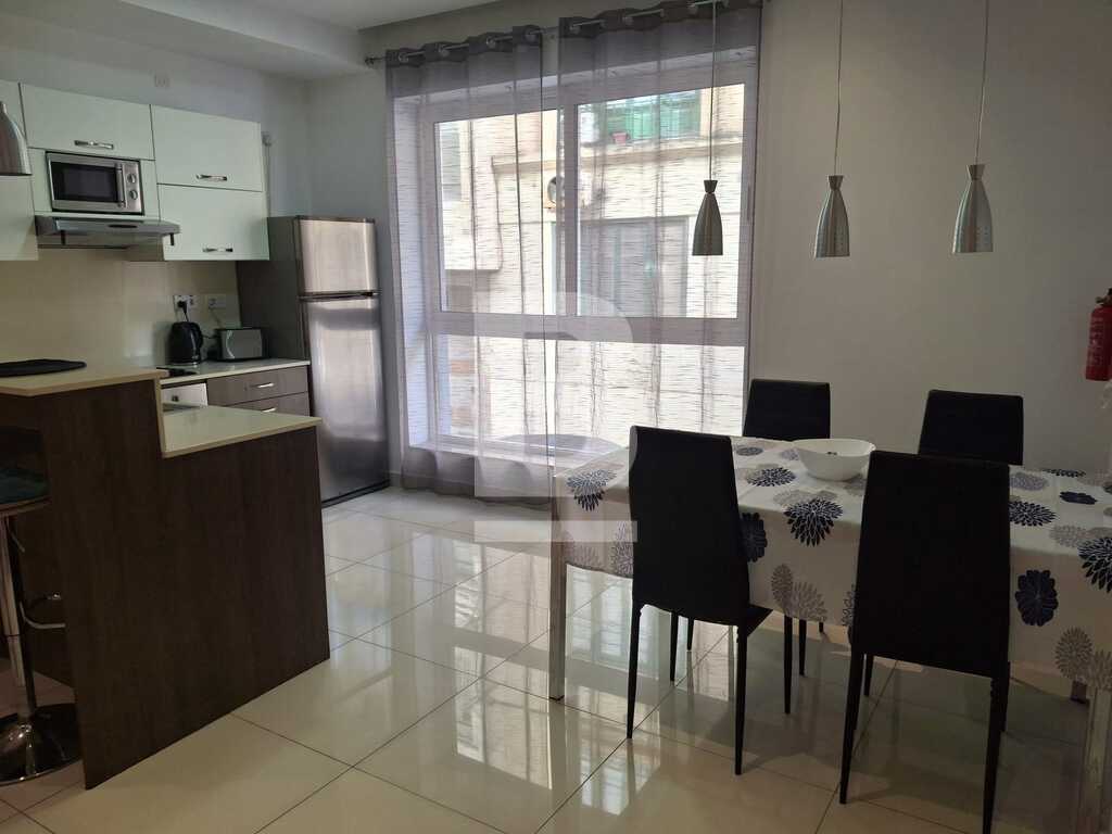 Modernly Finished 2 Bedroom Apartment in a Highly Sought after area of Sliema. Sleeping up to 4 persons, it comprises further of 1 main bathroom, a fully fitted open plan kitchen, living and dining area and a boxroom with both washing machine and tumble dryer. The property is fully air-conditioned, situated on an elevated 1st floor and located primely close to amenities including; bus stops, convenience shops, Shopping Malls, restaurants, cafes, bars, and the Sea!