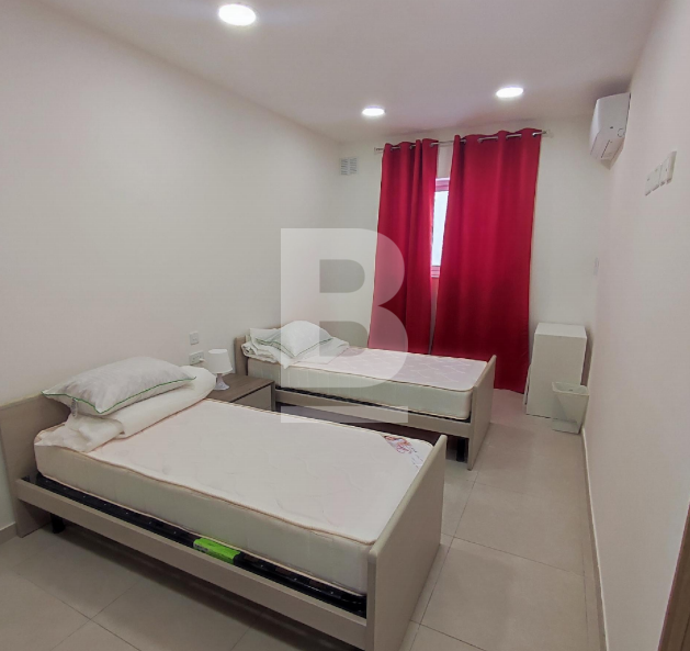 Bright and Modern 2 Bedroom Apartment in a Residential street in Marsaskala. Comprising 1 double bedroom with an en-suite bathroom, 1 twin bedroom ( sleeping a total of 4 persons ), a further main bathroom, a separate washroom with the washing machine and storage space, a fully fitted open plan kitchen, living and dining area with a front balcony for an outdoor area, while flooding the apartment with natural light. The property is fully air-conditioned, situated on the 2nd floor, served with a lift and located close to Marsaskala's convenience shops, mini-markets, bus stops, restaurants, cafes and the promenade.