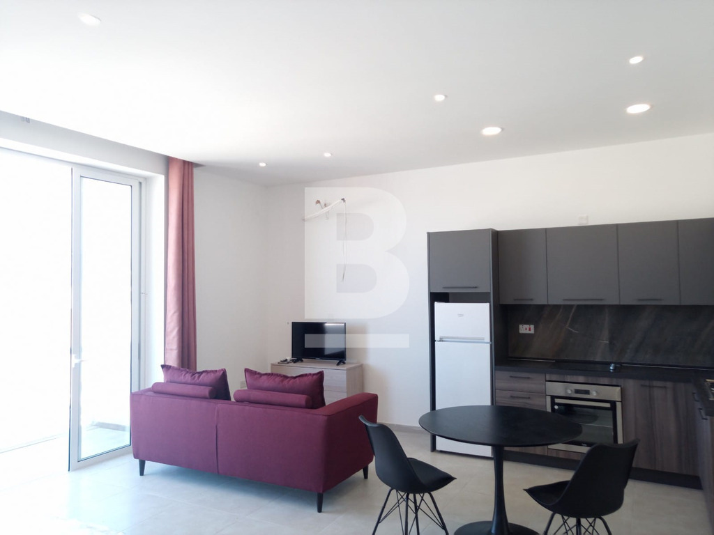Modern Studio Apartment in Marsaskala. Comprising a double-bed, main bathroom, fully fitted squarish layout of a kitchen, living and dining area with a sizeable interconnected front balcony enjoying sea views, distant country views and naturally lighting up the apartment. The property is fully air-conditioned, situated on the 4th floor, dog-friendly and located close to convenience shops, bus stops, cafes, restaurants, bars, the seaside, and nightlife of Marsaskala.
