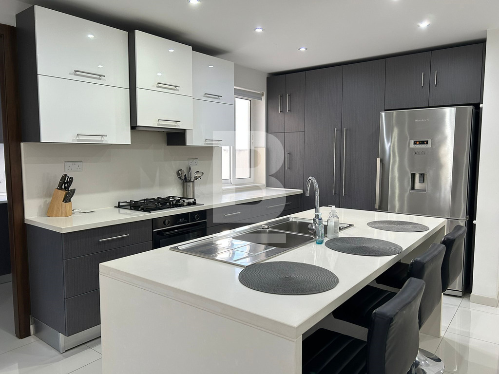 A Bright and Large Ultra-Modern Apartment in the Quiet Residential Location of Bahar ic-Caghaq. Comprising further of 3 bedrooms, 2 bathrooms ( 1 being an en-suite ), a fully equipped open plan kitchen, living and dining area including a dishwasher, spare kitchenette and front balcony and an additional boxroom with the washing machine and tumble dryer with plenty storage space and a further back balcony enjoying distant seaivews and a BBQ set-up. The property is very naturally well-lit, fully air-conditioned, situated on the 1st floor served with a lift and located close to daily conveniences including; bus stops, Green's Supermarket, the seaside, connections to the North via the coast road, cafes and restaurants.