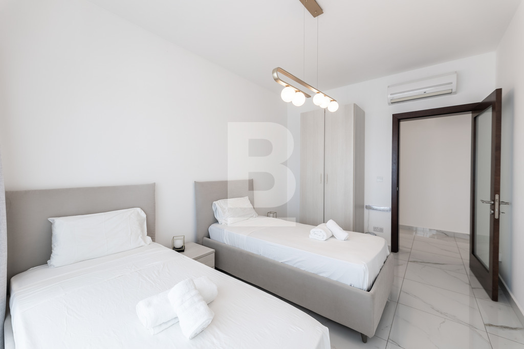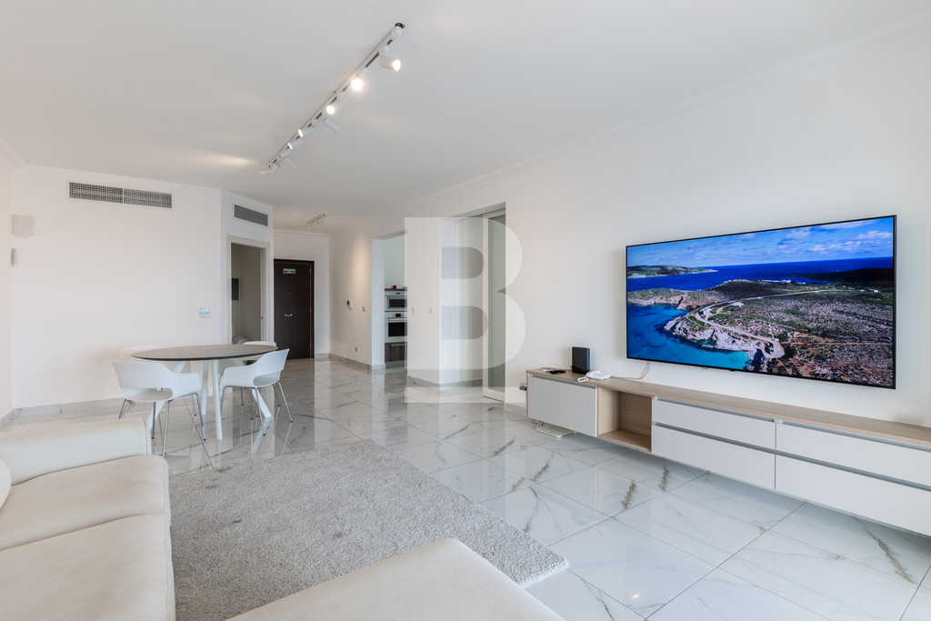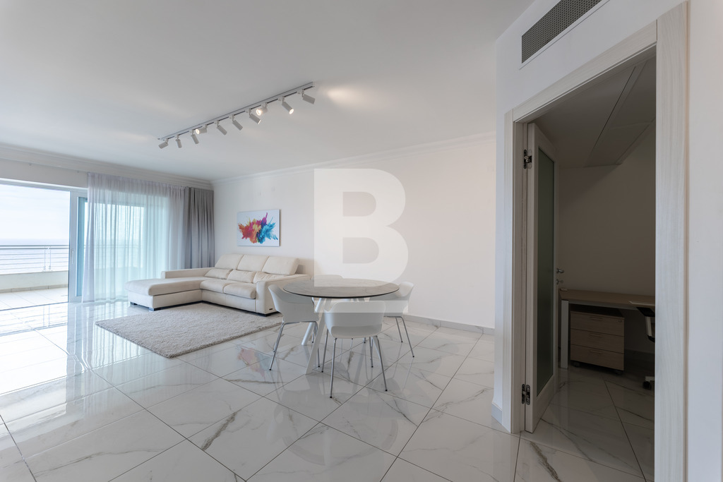 Nestled in the prestigious gated community of Fort Cambridge, this 16th-floor apartment offers an exceptional lifestyle with breathtaking sea views over Qui-Si-Sana. Spanning approximately 150 sqm, this fully furnished home features a bright open-plan living and dining area with a separate kitchen and breakfast space, flowing onto a generous terrace—perfect for relaxing or entertaining. The apartment includes two double bedrooms, a master with en-suite, a second bathroom, and a cozy study area. Fully air-conditioned and fitted with premium appliances, it also provides access to exclusive residents’ amenities, including a swimming pool, sun deck, and a fitness centre. Combining modern luxury, comfort, and serenity, this apartment presents a rare opportunity to own a welcoming home in Sliema’s most desirable waterfront community.