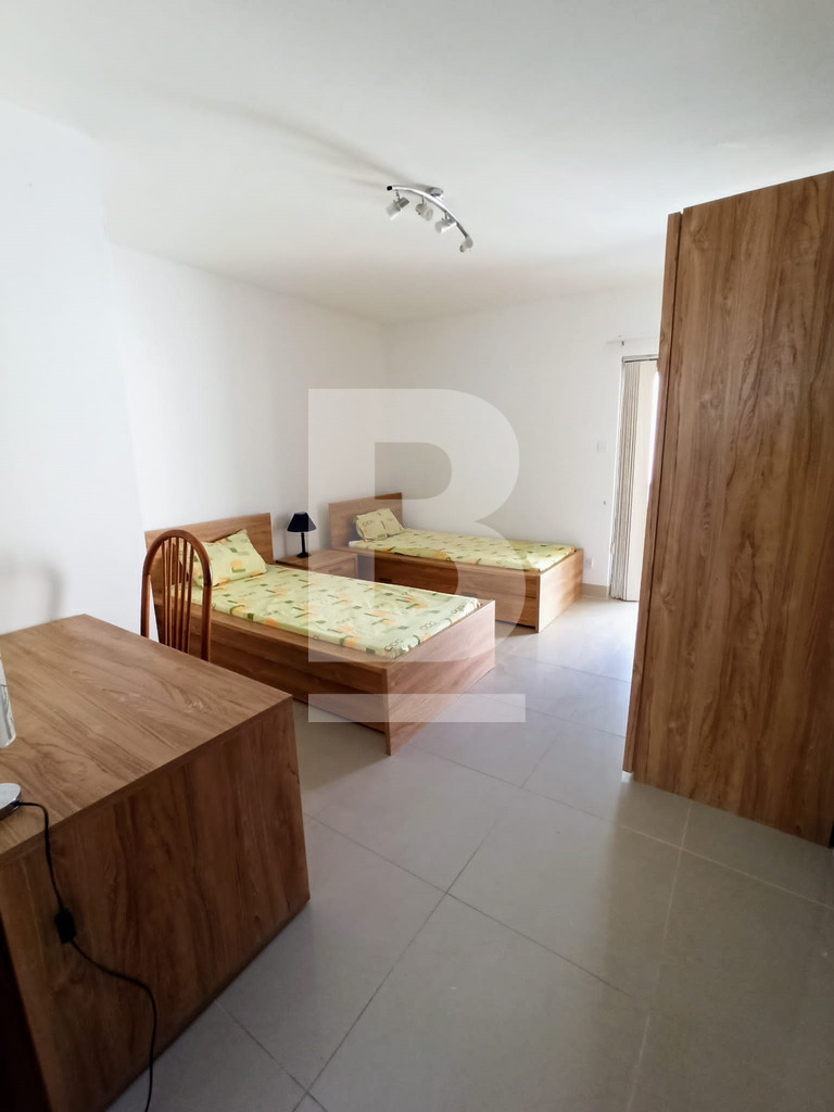 Bright and Airy Apartment in Swieqi. Comprising 1 double bedroom, 1 twin bedroom ( sleeping 4 persons in total ), 2 bathrooms ( 1 being an en-suite ), a fully equipped large open plan kitchen, living and dining area including a dishwasher and a small office space with an interconnected front balcony as well as a back balcony optimizing outdoor usage. The property is fully air-conditioned, situated on the 3rd floor served with a lift and located close to amenities including; bus stops, convenience stores (Dave's 24/7), barbers, grocers, pharmacies, restaurants, football clubs and more...