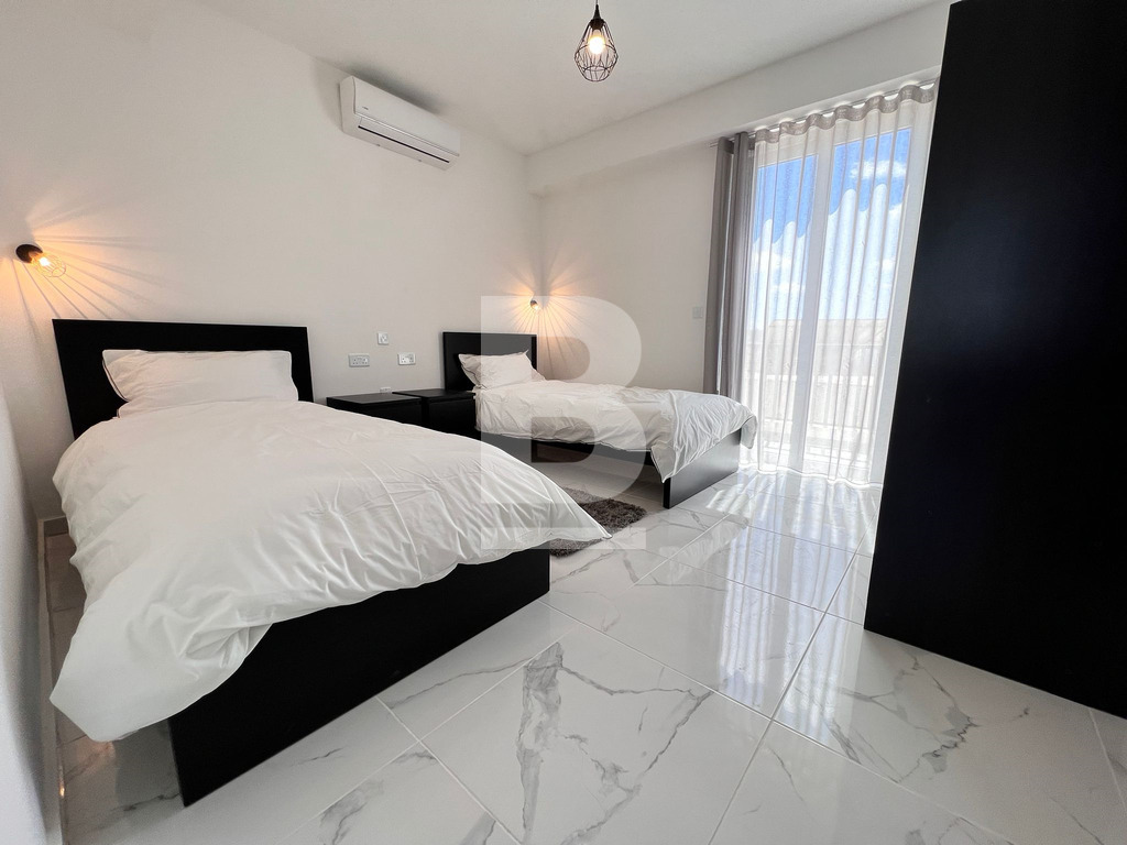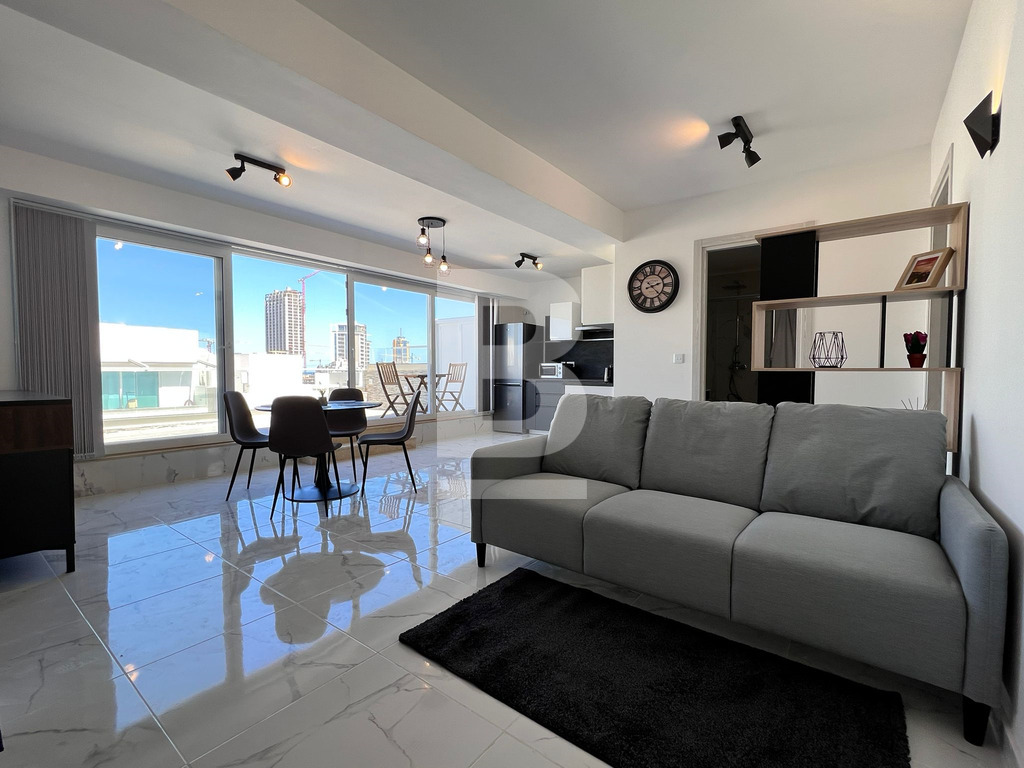 Spectacularly Designed 2 Bedroom Penthouse in Swieqi. Sleeping up to 4 persons, it comprises further of 2 bathrooms ( 1 being an en-suite ), an open plan fully equipped kitchen, living and dining area including a dishwasher, and a spacious front terrace enjoying a 6-person jacuzzi and distant seaviews as well as a back terrace optimizing outdoor living space and naturally flooding the penthouse with natural light. The property is finished to modern standards, fully air-conditioned, situated on the 4th floor served with a lift and located close to amenities including bus stops, convenience stores, Supermarkets, grocers, pharmacies, barbers, restaurants, and more...