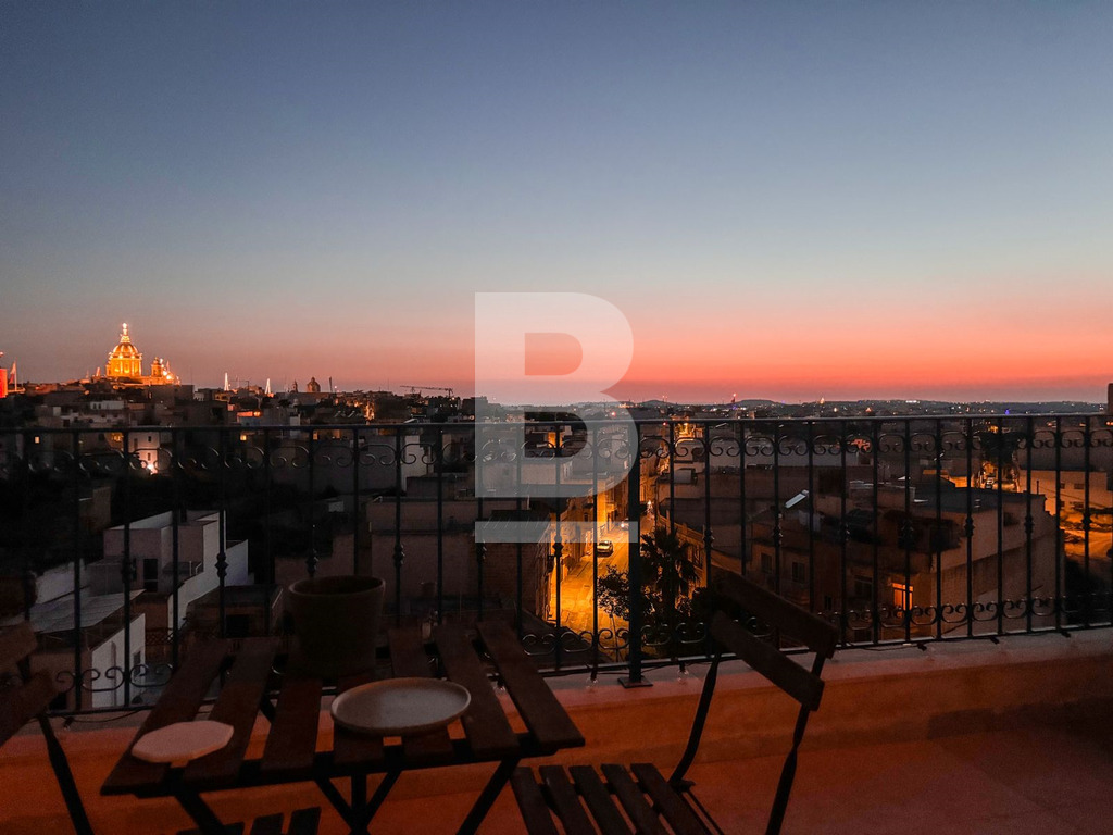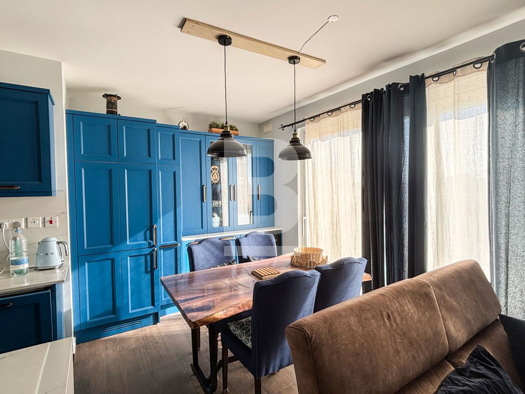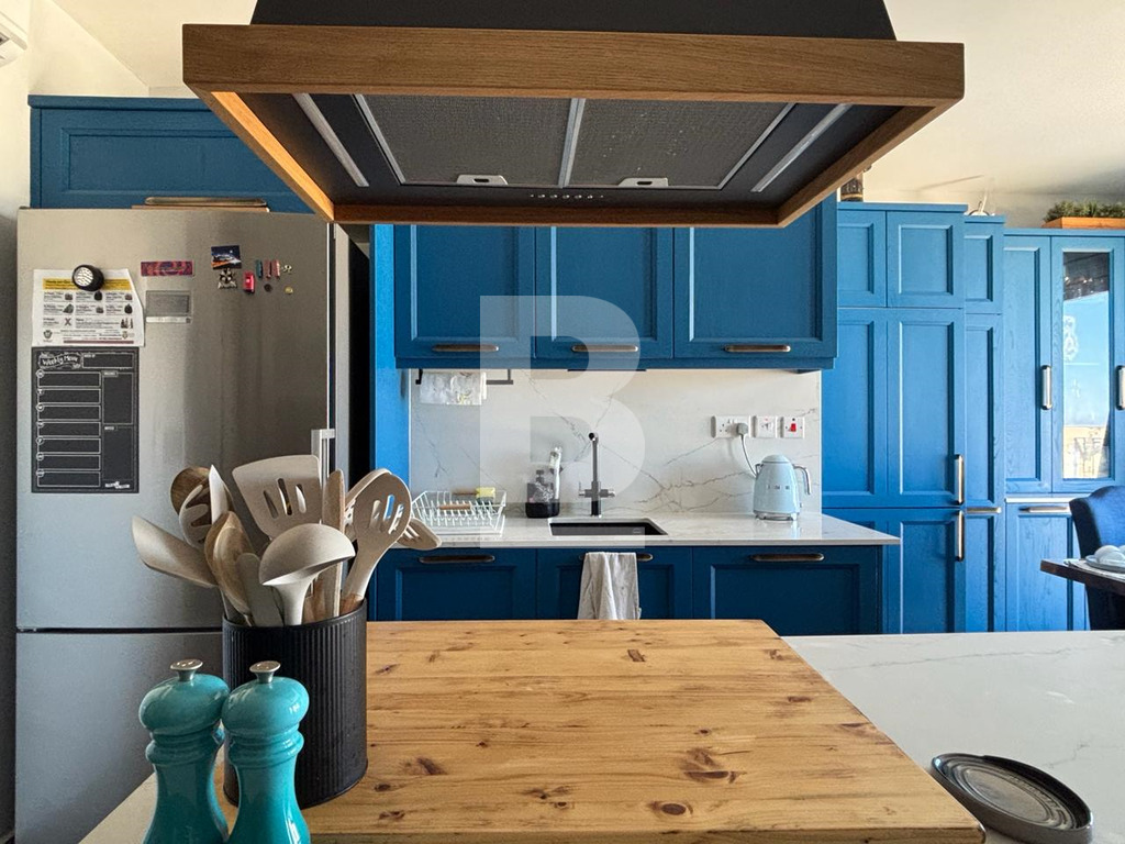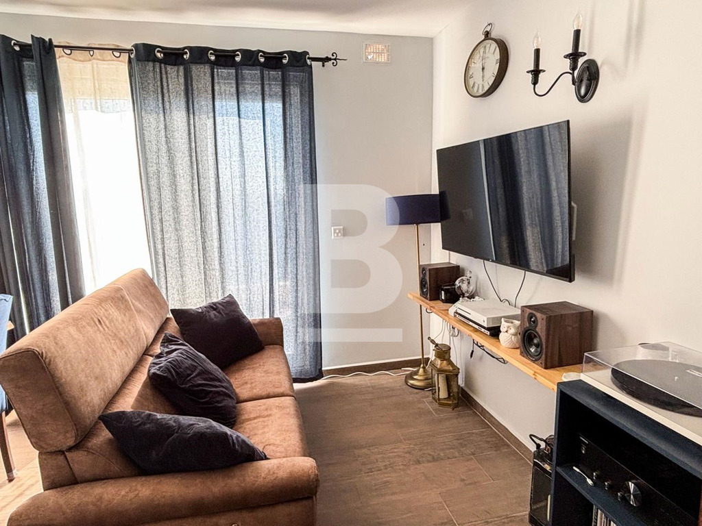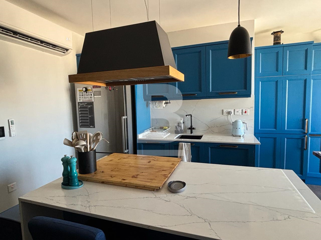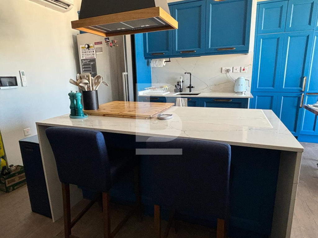 Elegant Penthouse set in a tranquil residential pocket of Nadur enjoying sweeping village vistas and distant sea views. The spacious layout features 2 bedrooms (one with an ensuite shower room), a large study, seperate bathroom and an open-plan kitchen, living and dining area. Thoughtfully finished to a high standard, the property boasts custom-made furniture, solid wooden doors, and a fully equipped solid wooden kitchen. The property is being sold fully furnished, fully air-conditioned and comes with full airspace as well as a generous 19 sqm private garage, complete with electricity and water connections. Ideally located near the picturesque bays of Dahlet il-Qorrot and San Blas and within easy reach of all village amenities, this home offers a perfect blend of comfort, style and convenience in one of Gozo’s most desirable locations.