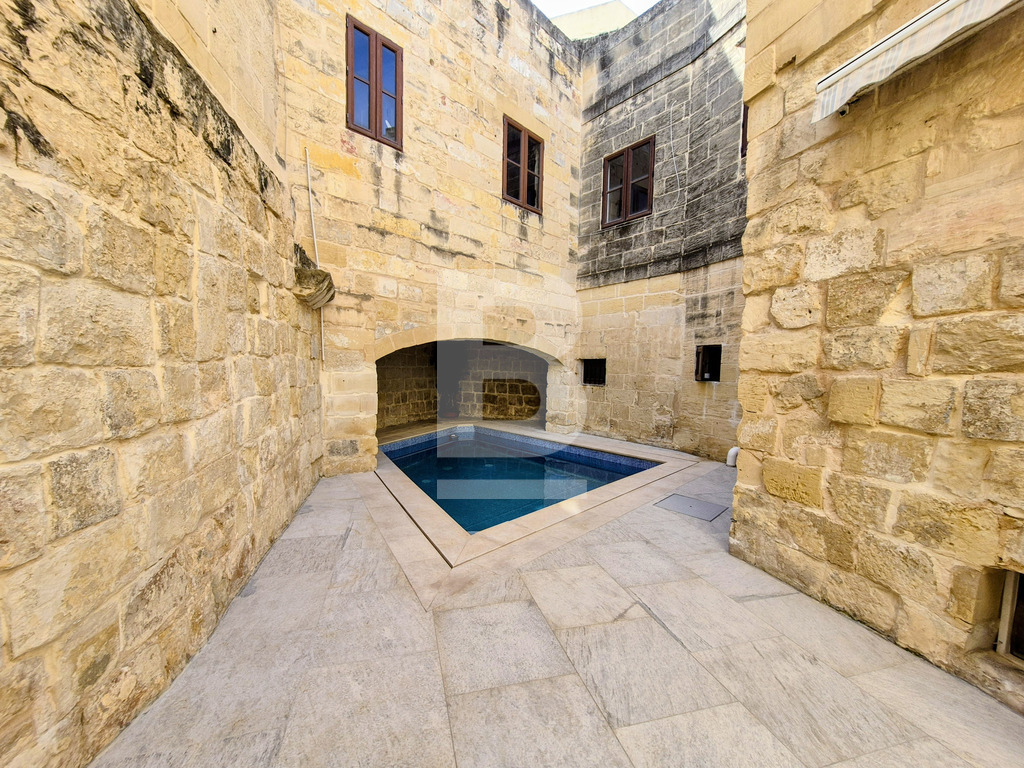 Situated in the heart of Attard’s Urban Conservation Area, this beautifully restored 400-year-old house of character seamlessly blends the charm of traditional Maltese architecture with the comforts of modern living. The property retains original features such as wooden beams, patterned tiles, xorok, kileb, and a bell-shaped stone well, giving it a truly unique historic character. The entrance opens into a welcoming hall leading to a fully equipped kitchen that overlooks a private courtyard with a heated swimming pool, perfect for relaxing or entertaining. The living areas include a cosy sitting room with a working fireplace and direct access to the courtyard, as well as a separate dining room offering flexible and inviting spaces. The house comprises three double bedrooms, with the master suite featuring an en-suite bathroom and walk-in wardrobe, while another bedroom offers space for an additional en-suite or walk-in wardrobe. Additional features include a spacious terrace overlooking the courtyard, a guest toilet, a roof-level laundry area with a roof terrace, and a second entrance providing direct access to the courtyard, ideal for hosting guests or creating an independent outdoor space. A lock-up garage is available for rent nearby, adding further convenience, while the tranquil yet central village location makes this property a rare opportunity to enjoy a historic home with all the comforts of modern living.
