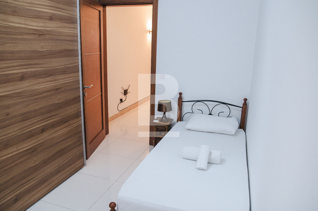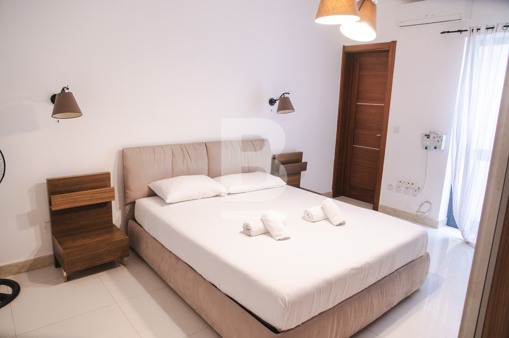 This secound-floor apartment is part in the heart of Ibragg, offering a bright and airy living space. With a lift, quality finishes, this beautifully furnished home consists of three spacious bedrooms, each equipped with independent air-conditioning, the master bedroom also includes its own ensuite bathroom, two bathrooms. The large open-plan living area combines the kitchen, dining, and lounge spaces, all equipped with air conditioning. The kitchen is fully equipped with a electric hob, oven, microwave, fridge/freezer, and plenty of storage space. Outside, the apartment offers a spacious front terrace with a dining area and a relaxing lounge space.