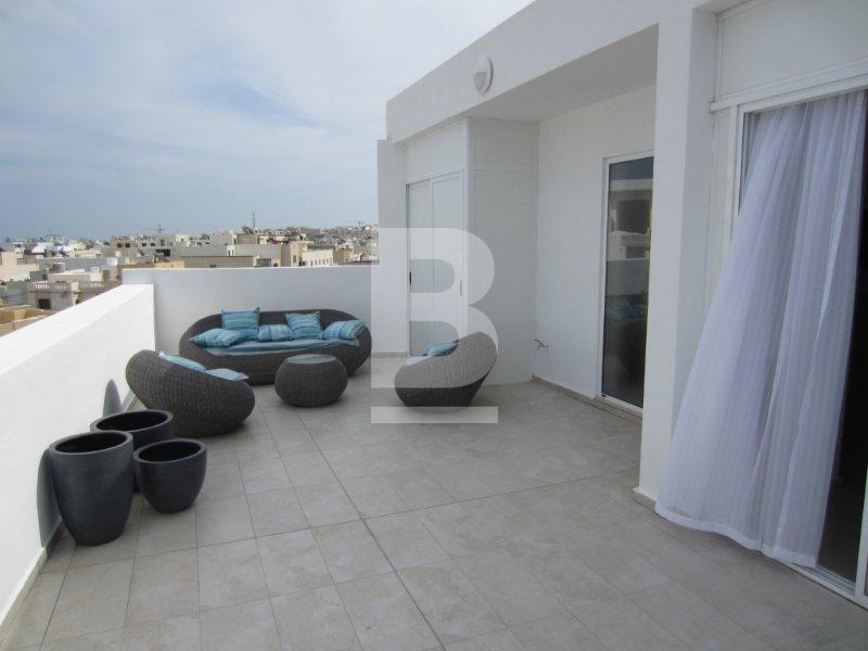 Fully furnished penthouse in the heart of Swieqi.This stylish property features two spacious bedrooms and two bathrooms, including an en-suite and a separate shower room. The open-plan kitchen/dining/living area is filled with natural light and opens onto a front terrace, perfect for relaxing or entertaining. A back terrace offers additional outdoor space. The penthouse is equipped with modern appliances, including a washing machine, fridge freezer, dishwasher, microwave, hob, and oven, as well as all necessary utensils. Air conditioning is installed throughout for year-round comfort. Served by a lift.