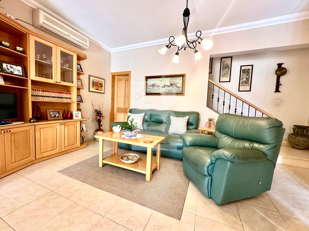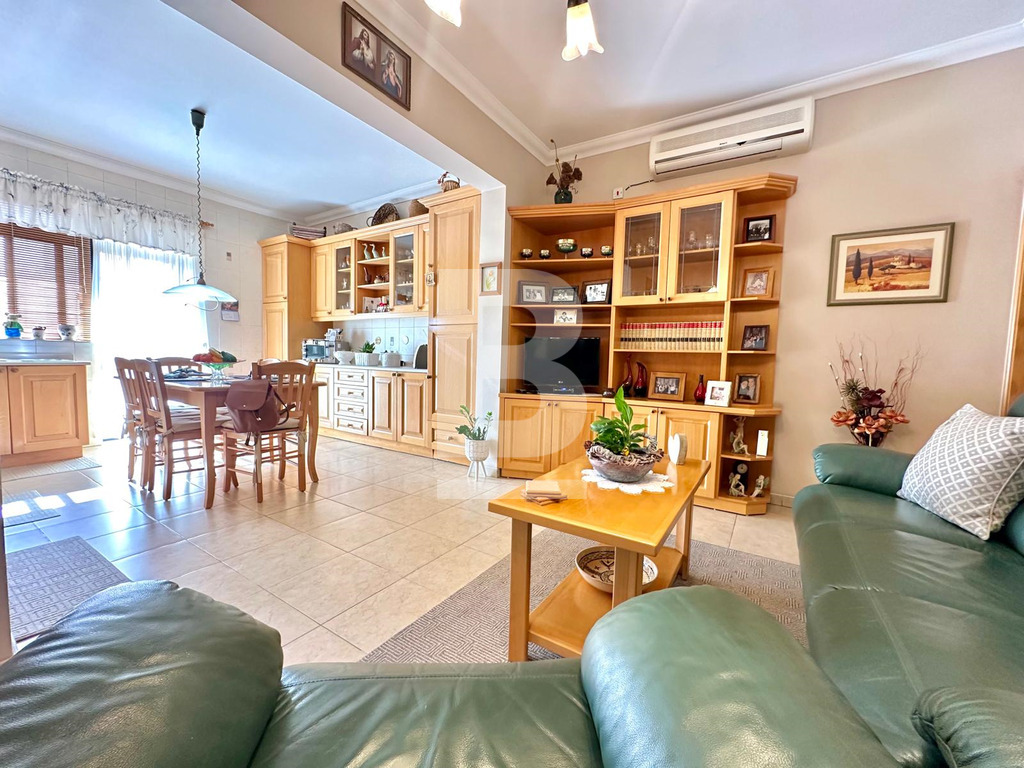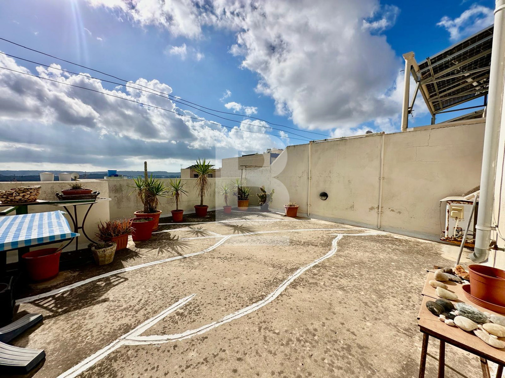 A rare find in Mellieha is this First floor DUPLEX MAISONETTE with half of the airspace and a one-car garage included! Having a combined kitchen, living, dining room on the first floor with a guest toilet. The Three bedroooms , (Main with large ensuite and balcony),main bathroom are located on the second floor. A private staircase takes you to the roof area with a large washroom and terrace with distant country views, that could also extended further, gaining internal space. The property will be sold semi furnished and Freehold.