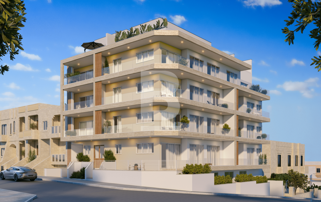 Situated in a peaceful area of Pembroke, this new corner seafront development offers an elevated ground-floor apartment being sold in shell form. The property features a welcoming entrance hall, leading into a bright open-plan kitchen, living, and dining area that opens onto a front terrace with side sea views. Accommodation includes two double bedrooms, with the main bedroom enjoying ensuite facilities, a main bathroom, and an internal laundry room. Both bedrooms enjoy direct access to a spacious backyard, ideal for outdoor entertaining or relaxation. The apartment is being sold in shell form, with all common areas — including the lift — finished to a high standard. Optional garages available. Completion in shell form is set for March 2027.
