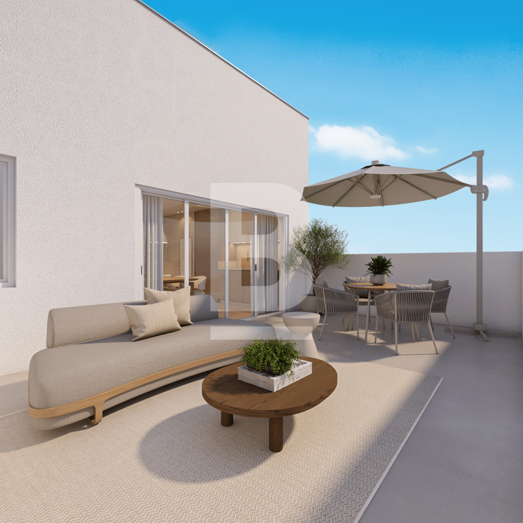 GHARGHUR Penthouse with Distant Sea & Country Views Located in a quiet part of Gharghur, this fourth-floor penthouse forms part of a smart new block and is being sold on plan, with completion set for September 2026. Enjoying distant sea and country views, the property combines bright interiors with generous outdoor space ideal for those seeking comfort, privacy, and style. The layout features an open-plan kitchen / living / dining area opening onto a large front terrace, a main bedroom with ensuite, a main bathroom, and a boxroom. The home will be sold in shell form with all common parts, including lift, finished to high specifications and offered freehold, with lift access throughout the block. Airspace included