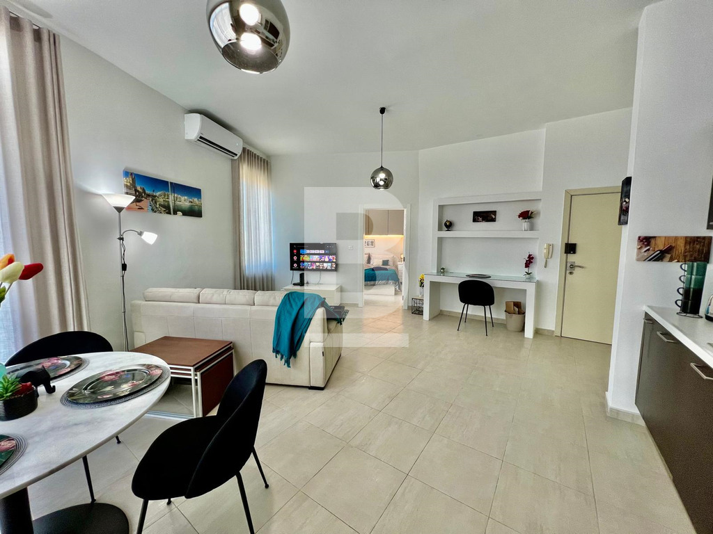 Presenting a modern, cosy and homely fully furnished one-bedroom apartment located in the vibrant heart of St Julians. This well-maintained residence offers a comfortable open-plan kitchen, dining, and living area, ideal for both relaxation and entertaining. The apartment is equipped with essential appliances, including a washing machine, microwave, oven, and fridge, ensuring convenience and ease of living. The property features one bathroom and is serviced by a lift, offering added accessibility. The location provides easy access to local amenities, restaurants, and public transport, making it an excellent choice for individuals or couples seeking a stylish home in a sought-after area.
