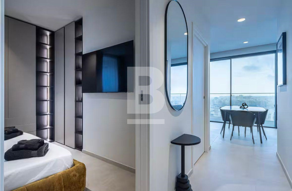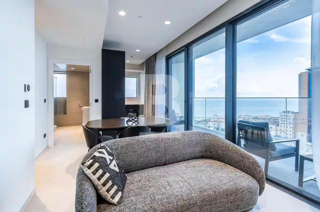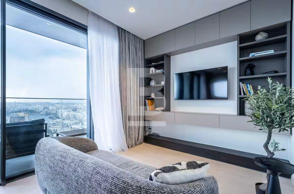Mercury Tower - Experience luxury urban living in this exceptional one-bedroom apartment situated on a high floor within the iconic Mercury Tower, St. Julian’s. Showcasing sweeping views over Balluta Bay and the Sliema promenade, the open-plan layout features floor-to-ceiling windows that flood the space with natural light, a sleek kitchen equipped with premium appliances, and a spacious double bedroom with direct balcony access. A designer bathroom and air conditioning add comfort and style, while the private balcony offers a tranquil vantage point over the Mediterranean. Residents enjoy access to an array of upscale amenities including a rooftop pool, fitness centre, 24/7 concierge service, on-site dining options, and private parking—all just moments from renowned restaurants and the bustling business district. This is city living elevated to its finest. Contact us today for a private viewing.