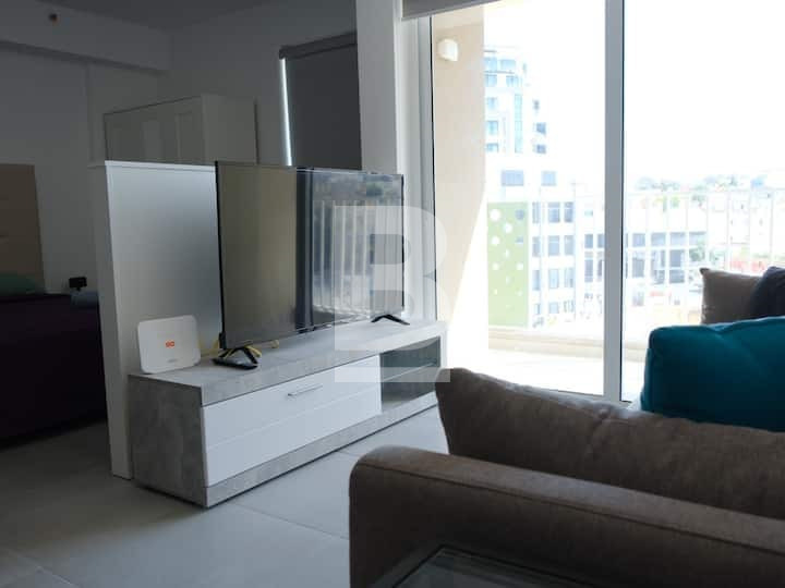 6th floor Studio, enjoying extensive sea and urban views. Part of a trendy new development just off St. George's Bay, a short walk to the major business hubs, all amenities, and entertainment facilities. The property layout consists of an open-plan kitchen/ living/dining with a walkout onto a front balcony. A perfect option for those seeking a stylish home with views from all its spaces.