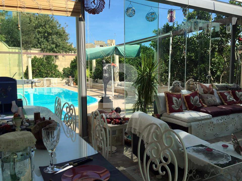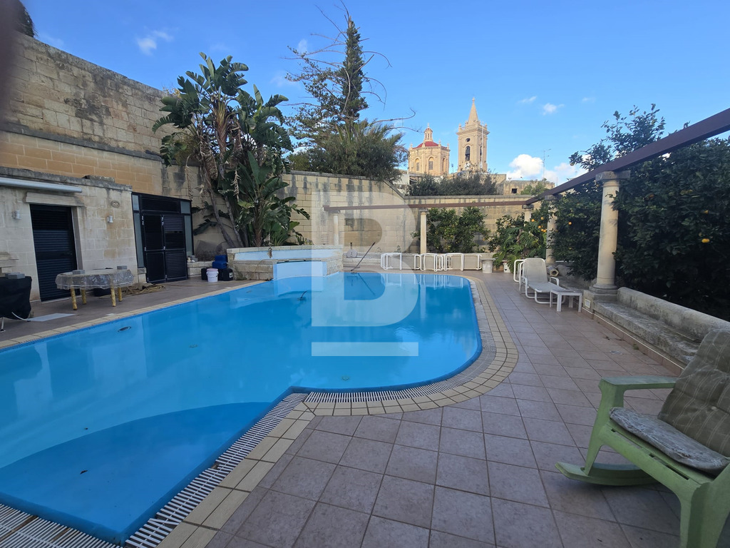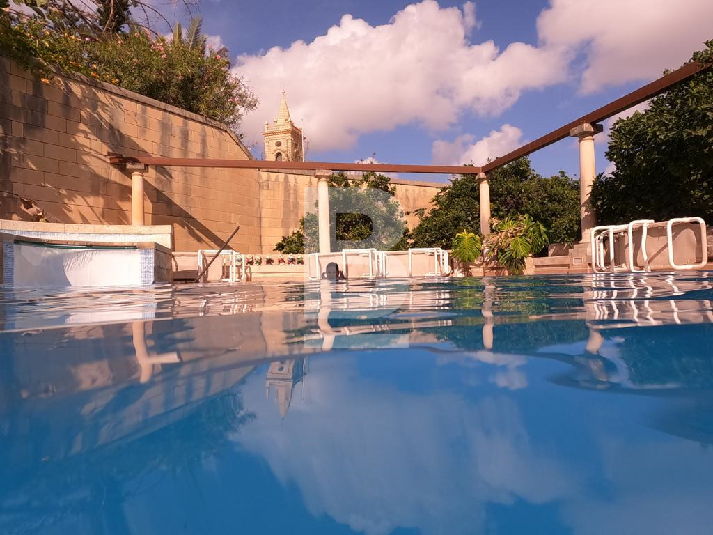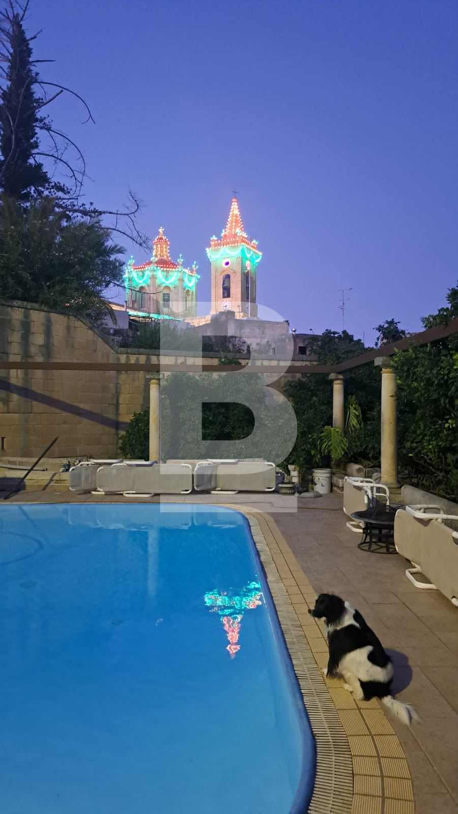 Nestled in the tranquil village core of central Malta, this exceptional providential property combines privacy, sustainability, and modern comfort across two tumoli of fertile land adorned with mature trees, exotic plants, and herbs. The residence features multiple access points, including an interconnecting street-level garage accommodating four cars and a separate entrance for the gardener. Designed with futuristic safety and accessibility in mind, the home is equipped with a wheelchair lift to all floors, photovoltaic and solar water-heating panels, and abundant stored water supplied by a three-storey well, large pool with dual balance tanks, and easy refilling access. The outdoor area is a serene haven boasting a stunning infinity pool with jacuzzi area, conservatory overlooking lush gardens, poolside kitchenette, shower room, protected BBQ area, and a charming chicken coop for fresh eggs. Inside, five to six spacious bedrooms and five bathrooms are complemented by air conditioning throughout, a grand dining room with fireplace, bright living and conservatory spaces overlooking the garden, a study, and elegant glass doors leading from a hall crowned by a domed skylight. The rooftop offers a washroom, water tanks, and a private jacuzzi with lift access. Surrounded by peaceful energy and scenic views—including the nearby church whose illuminated reflection dances across the pool during village festivities—this private, quiet sanctuary lies within walking distance of all amenities, shops, and historic gardens.