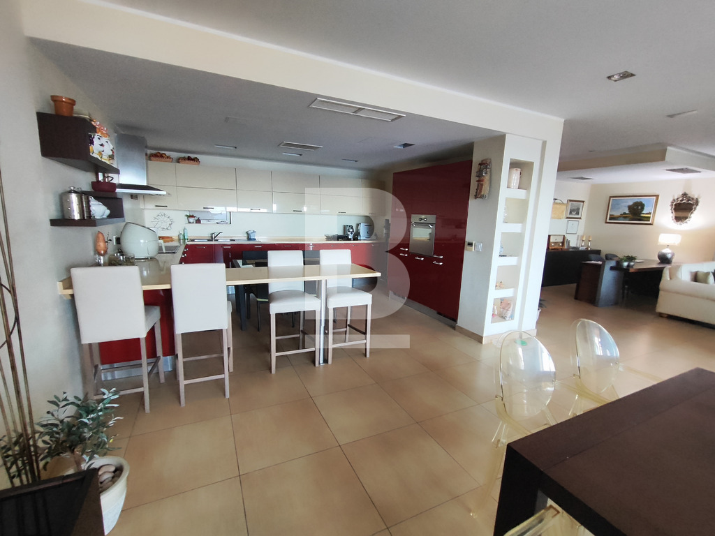 Measuring approximately 190sqm, this home has been impeccable kept and finished with good quality materials, featuring custom-made furnishings such as Rimadesio doors, marble and lava stone finishes, and a designer kitchen. The layout comprises an elegant entrance hall, a separate kitchen, a formal dining area, and a spacious living room opening onto a front terrace that captures breathtaking views of the marina and Mediterranean Sea.