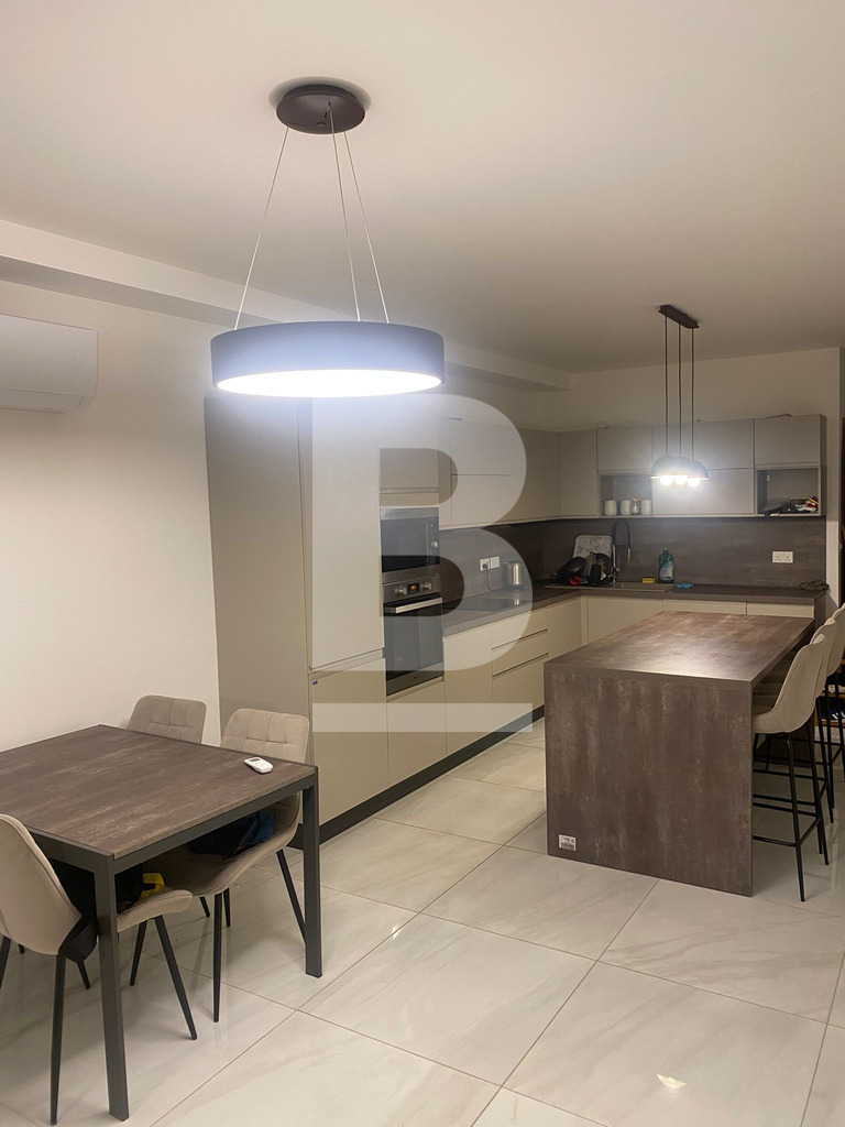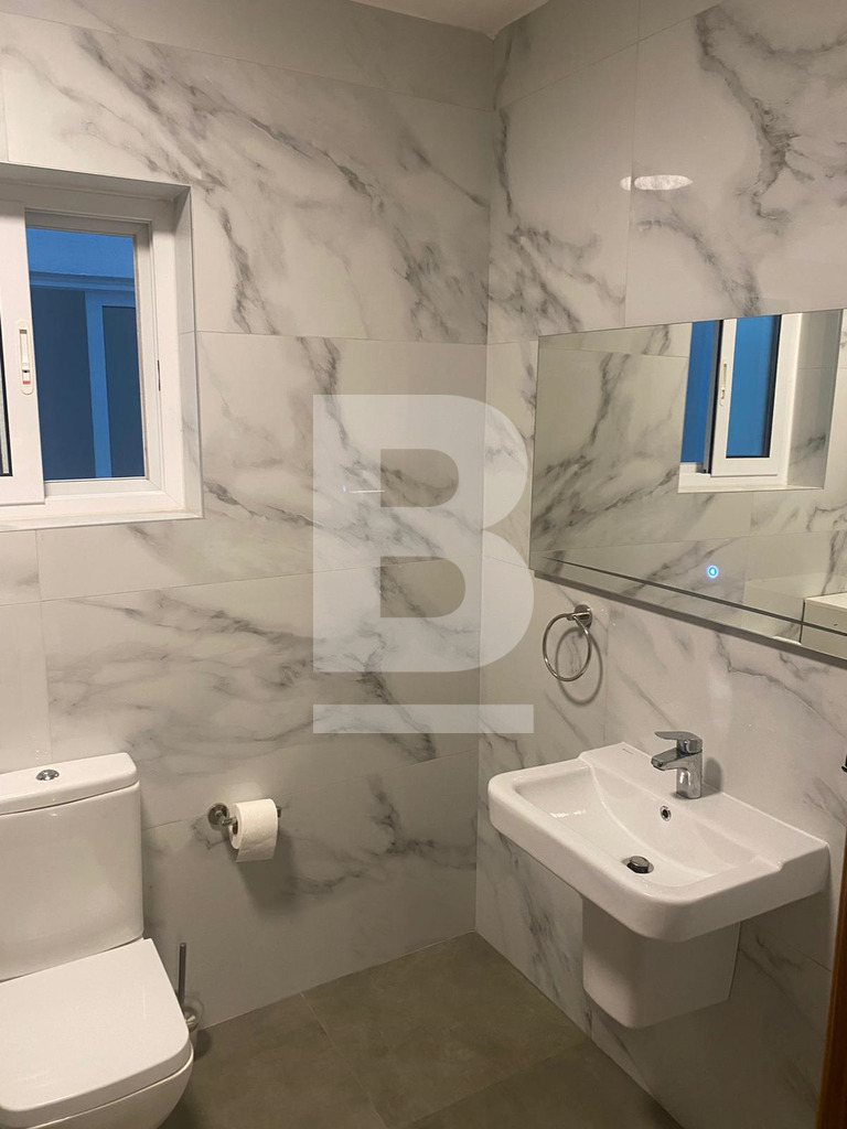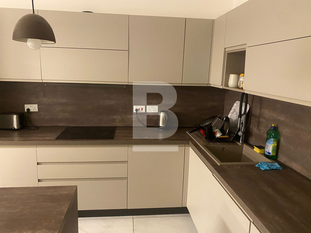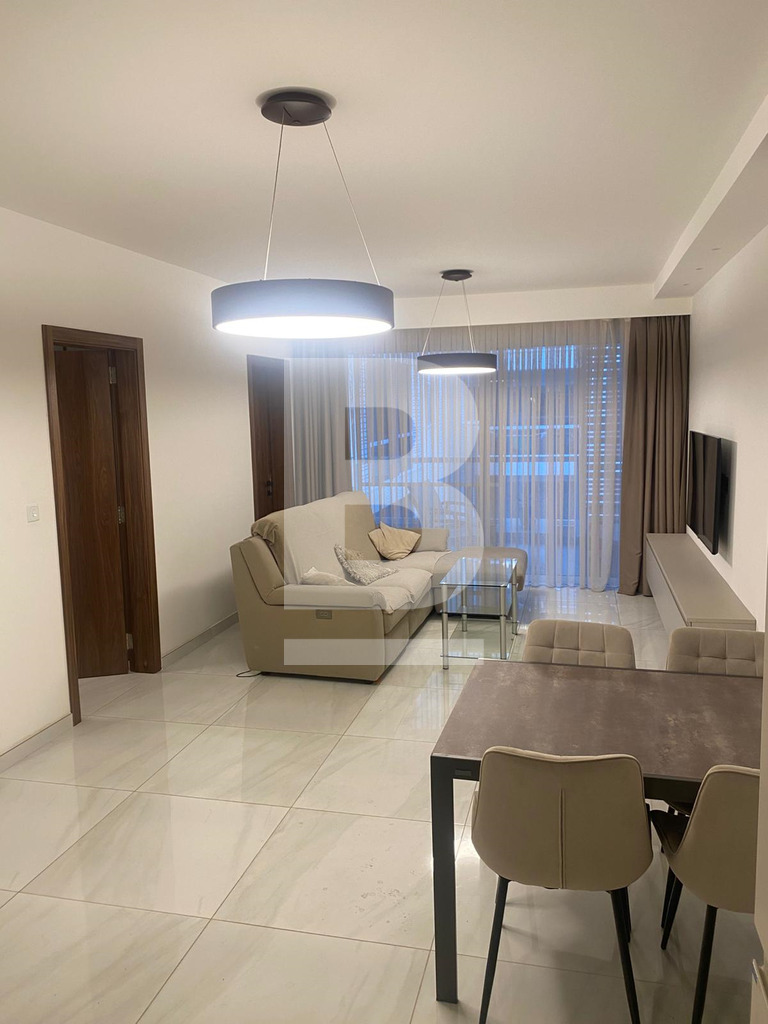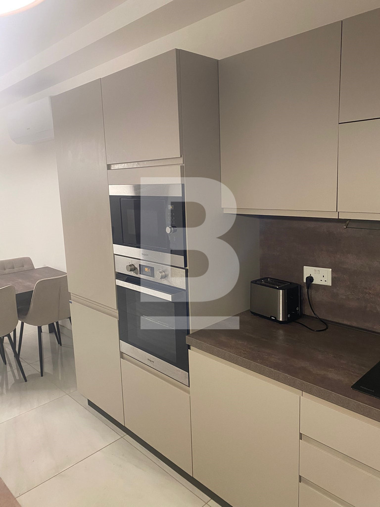 Bright and Modern Apartment just 2 minutes walk from the Qawra Seafront. Comprising 2 double bedrooms, 2 bathrooms ( 1 being an en-suite ), a boxroom with the washing machine and storage space, a fully fitted open plan kitchen, living and dining area with an interconnected front balcony enjoying outdoor lounge furniture perfect for relaxing in style. The property is fully air-conditioned, situated on the 5th floor with lift servicein the block and located close to shops, butchers, pharmacies, bus stops and more...