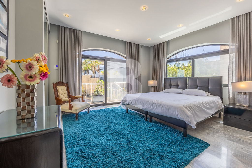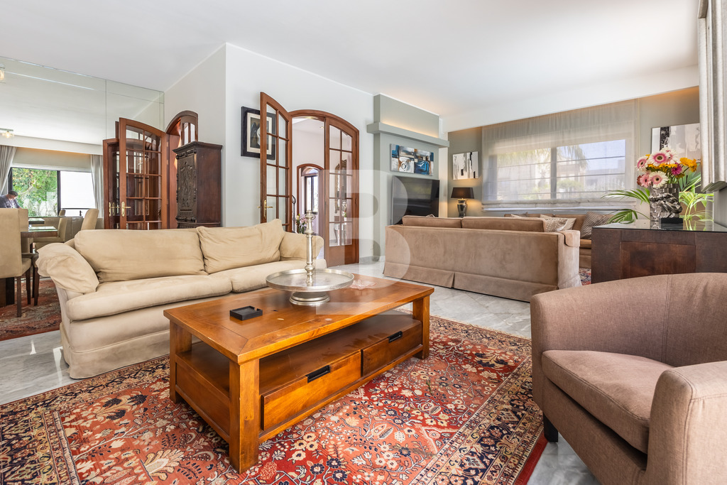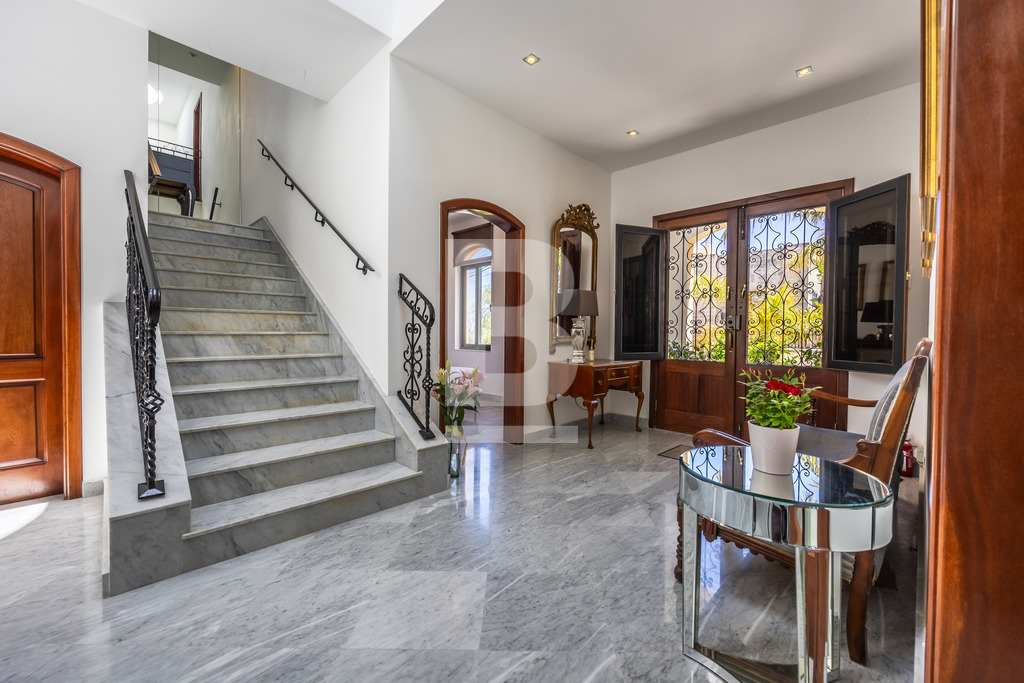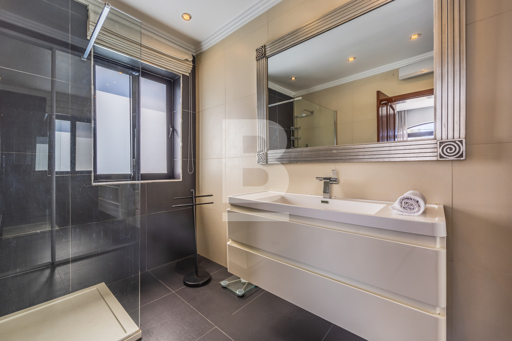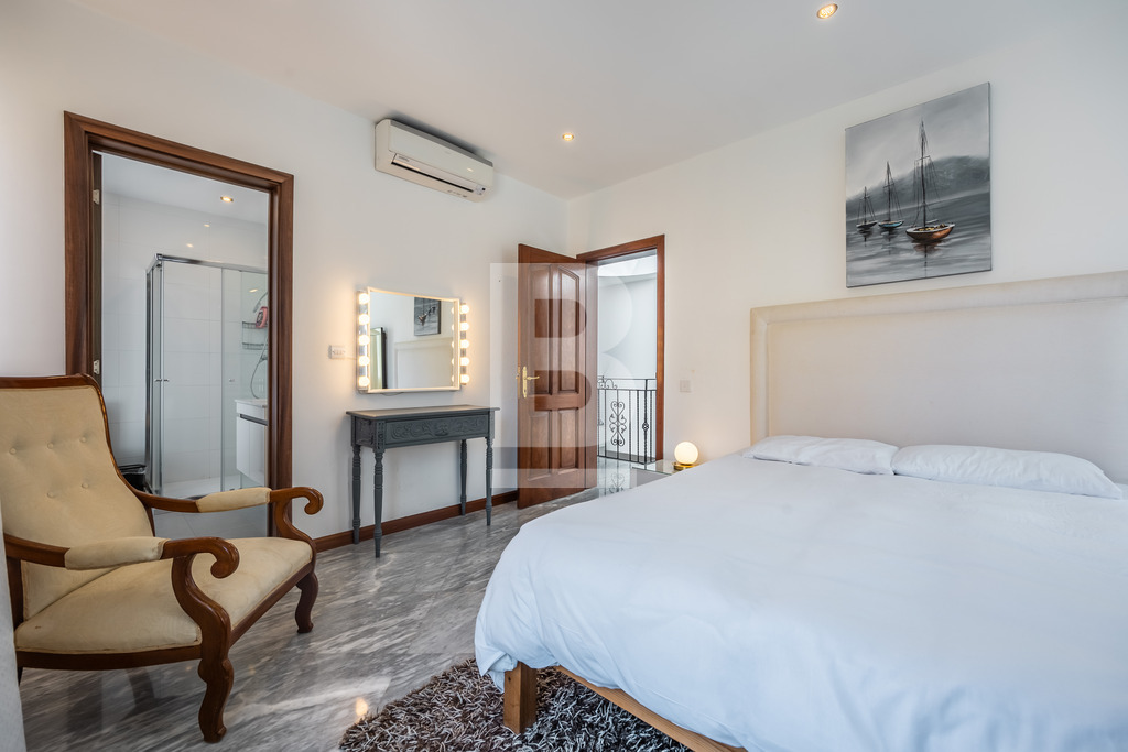 A homely and welcoming semi detached VILLA, located in one of the most sought after areas. This property comprises bright hallway leading onto a large room having an informal living room and formal sitting/dining. This room leads onto the swimming pool area with a bar and ample space for entertaining. A fully equipped kitchen also leading onto the pool / garden area with shower. Also including on the lower level is a guest shower room and a study. A staircase takes you to 4 bedrooms, 2 of which have en-suite facilities a third bathroom and surrounding balcony. Complimenting this villa is a two bedroomed flatlet and a lift.
