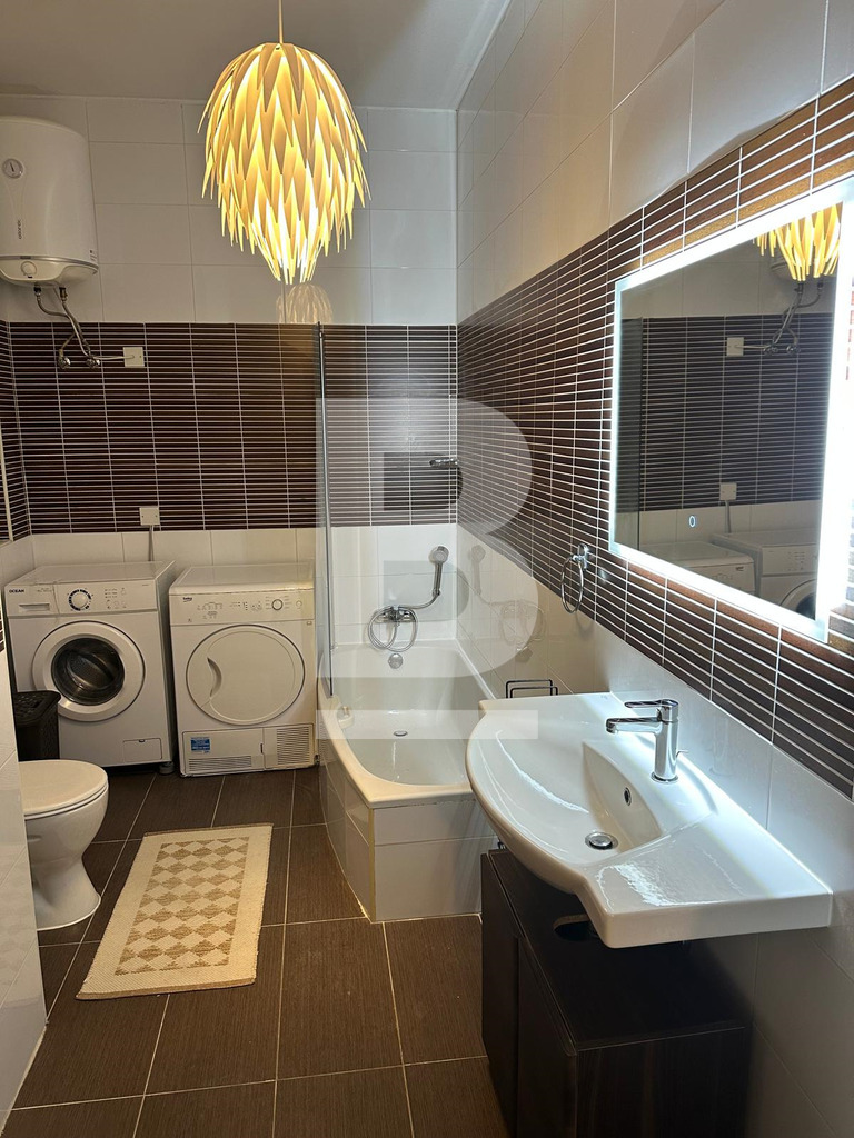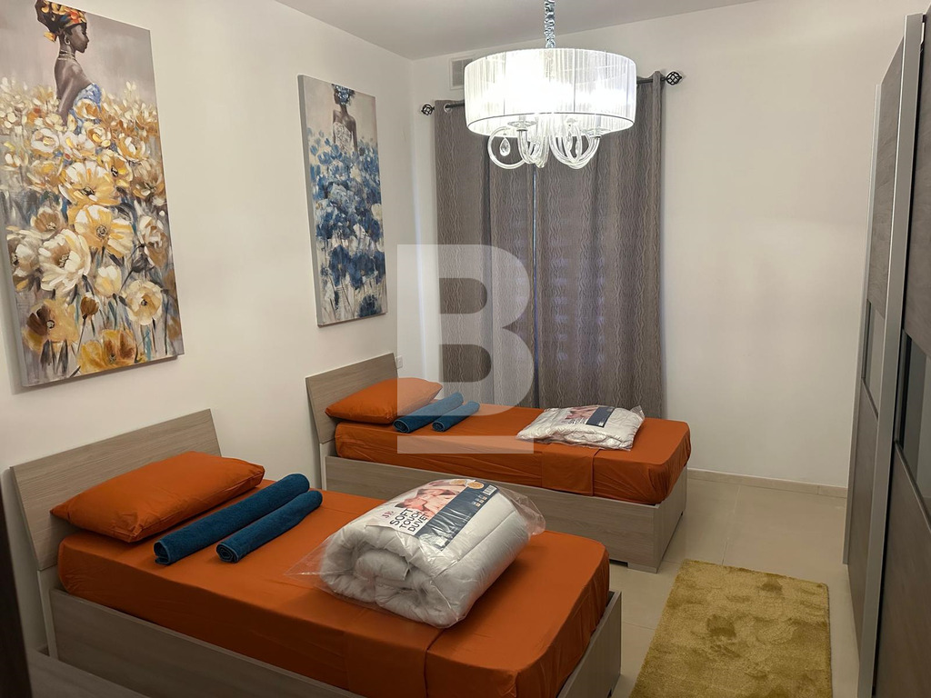 This modern, family-friendly apartment features two comfortable bedrooms. The master bedroom is equipped with a double bed, while the second bedroom offers two separate single beds - ideal for children or additional guests. The apartment is fully air-conditioned and designed to provide a pleasant and relaxing stay.