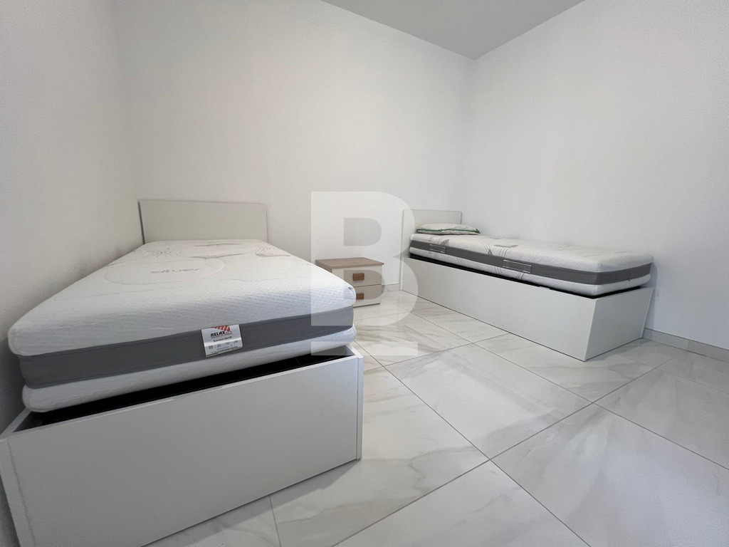 Located in beautiful Qawra, this lovely 2 bedroom apartment offers comfortable modern living. The bright open-plan kitchen, living and dining area leads onto a front terrace overlooking a peaceful internal garden with a fountain. The property features two double bedrooms, one with an en-suite, plus a main bathroom. Set in a well kept Mulberry park and in a highly desirable neighbourhood, this home is ideal for anyone seeking a quiet, quality living environment.