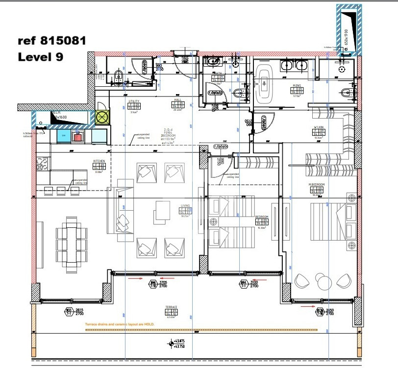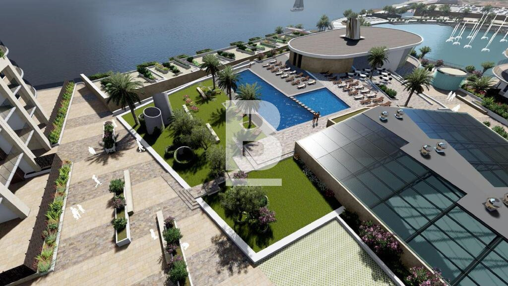 This outstanding upper level unit which measures 180 sqm offers an attractive square layout that includes an open plan kitchen/lounge/dining room, flowing on to 44 sqm terrace enjoying open seaviews and the Piazza, 2 bedrooms (apartment was originally a 3 bedroom) The Master bedroom quarters are large and have a dream walk in wardrobe and spacious ensuite bathroom with both shower and bath and his /hers sinks. There is also a comfortable guest bathroom, utility room. All rooms have views and natural daylight . Finished in great taste and high standards - bathrooms, internal doors and ACs are to be installed by the owner. A Large one car interconnecting garage is included in price. A lovely bright square layout with great Terrace and views - well worth a visit!!