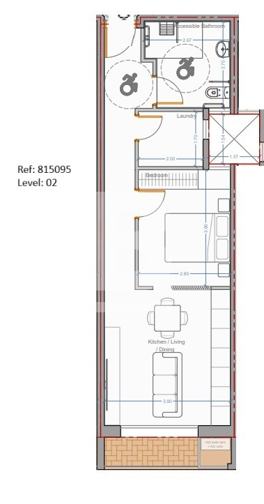 This second-floor unit is being sold in shell form, with completion targeted for March 2028. It comprises a kitchen/living/dining area leading onto a terrace, a well-sized double bedroom, a bathroom, and a laundry room. Optional garages are also available.