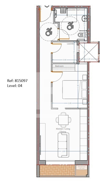 This fourth-floor unit is being sold in shell form, with completion targeted for March 2028. It comprises a kitchen/living/dining area leading onto a terrace, a well-sized double bedroom, a bathroom, and a laundry room. Optional garages are also available.