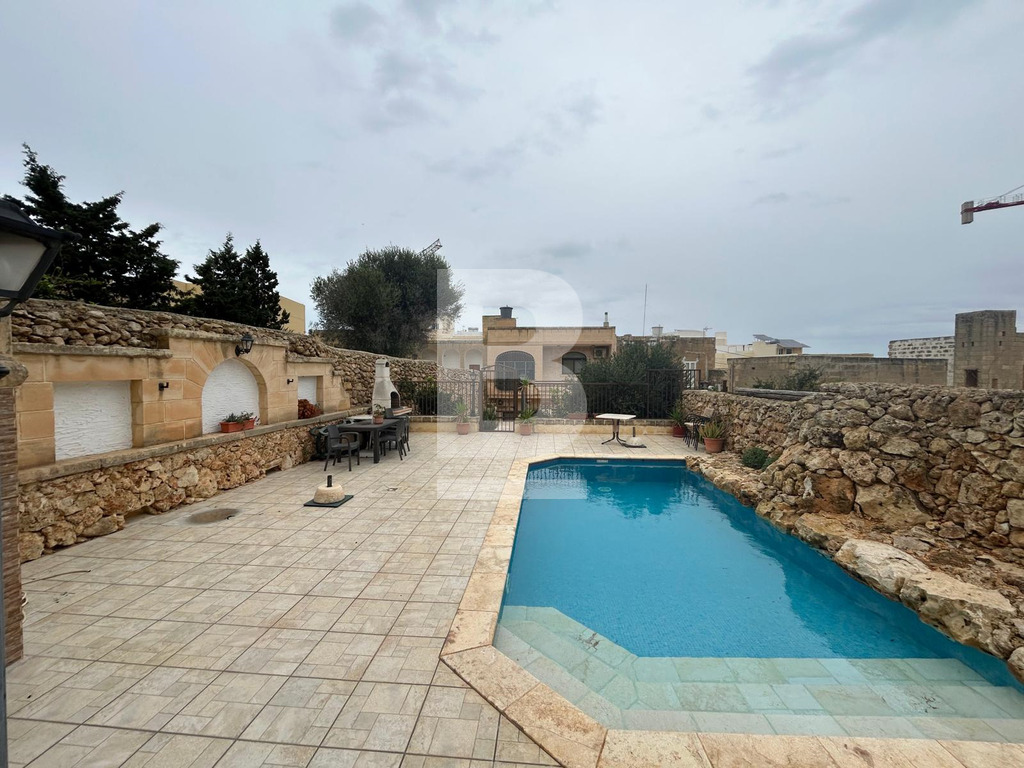 Discover this beautifully presented, fully furnished farmhouse nestled in the heart of Xagħra. This inviting home features 3 spacious and well-appointed bedrooms along with 2 shower rooms, offering comfort and convenience for both residents and guests. The open-plan kitchen, dining, and living area is fully equipped with all the essentials, creating a warm and functional space ideal for everyday living or hosting gatherings.The property enjoys pleasant side country views that enhance its tranquil atmosphere, while the private swimming pool and surrounding garden area provide the perfect setting for relaxation, summer entertaining, or enjoying a BBQ with family and friends. For added comfort, the farmhouse is fully air-conditioned throughout and includes a convenient drive-in space that can accommodate up to 2 vehicles.This charming home blends traditional character with comfortable living, making it an excellent choice for those seeking a serene retreat in one of Gozo’s most picturesque villages.