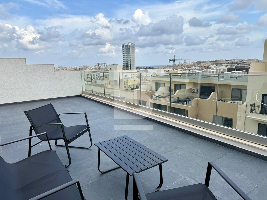 BRAND NEW Modernly Finished and Furnished Penthouse in a Residential Region of Msida. Comprising 1 double bedroom, 1 twin bedroom (accommodating up to 4 persons ), 2 bathrooms, a fully fitted kitchen, living and dining area interconnected with an expansive front terrace ensuring optimal natural light absorption, enjoying outdoor lounge furniture and boasting distant sea views and views of Valletta City. The property is fully air-conditioned, situated on the 6th floor with lift service and located close to amenities including: bus stops, convenience shops, cafes, bars, and the Ta' Xbiex Seafront all being within walking distance.