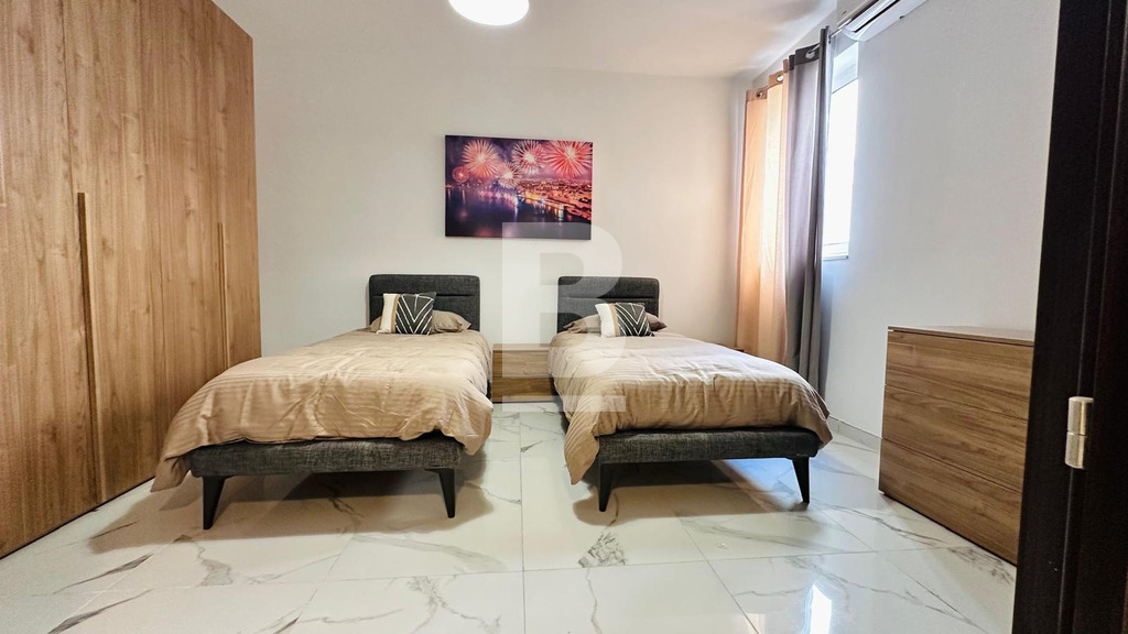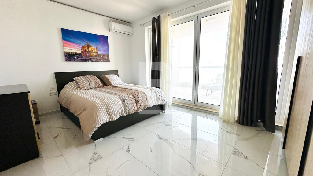 Naturally Well-Lit 7th Floor Apartment in a Quiet Residential Neighbourhood in Mellieha. Comprising 3 bedrooms ( 2 double, 1 twin - accommodating up to 6 persons ), a main bathroom, side terrace with outdoor lounge furniture and hammocks and a fully fitted open plan kitchen, living and dining area. The property is fully air-conditioned, has lift service throughout the block and is located within close proximity of shops, bus stops, Wellbee's Supermarket, petrol stations, barbers, salons and more...