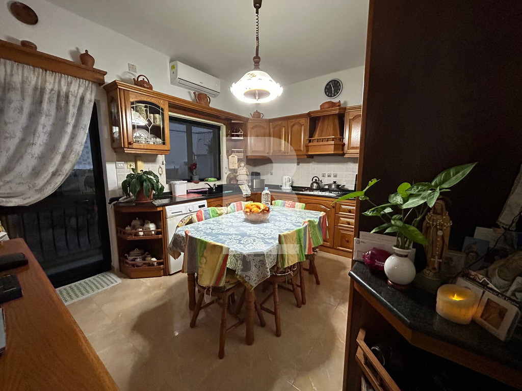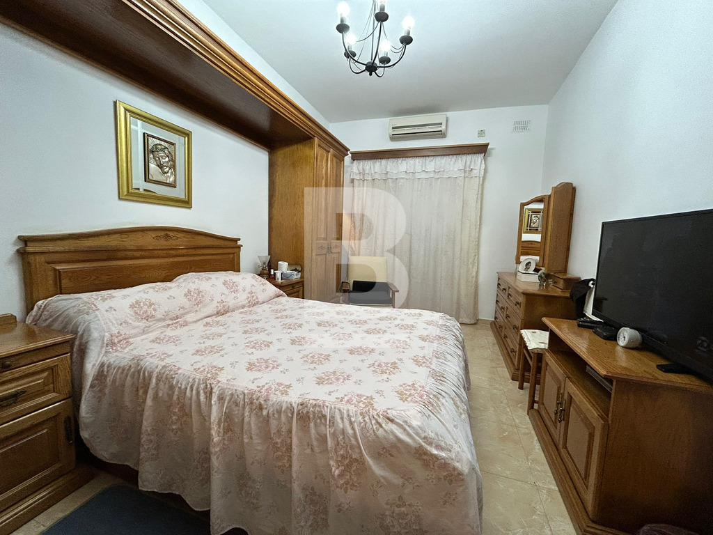 A Lovely and Homely 2 Bedroom Apartment in a quiet Side-Street of Mosta. In a block of only 2 units, this apartment comprises 1 double bedroom with an en-suite bathroom and a small private front balcony, an entrance hallway leading to a main bathroom, sitting area ( which can be a 3rd bedroom ), guest toilet, internal yard and the kitchen/dining area with a further back balcony. The highlight of the property is the washroom at roof level with full ownership of the airspace allocated to the apartments' side of the roof, which enjoys views of the Mosta Rotunda. Property is being sold FREEHOLD and fully furnished.