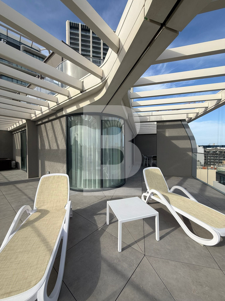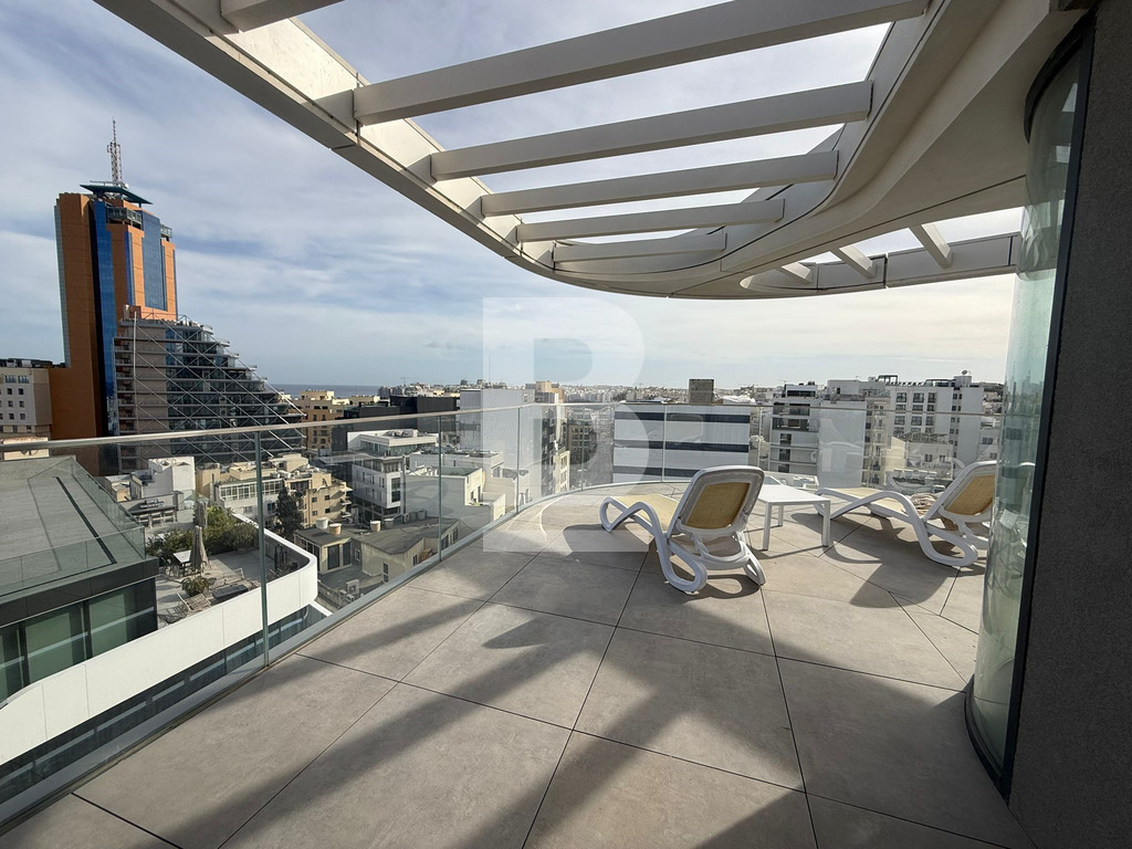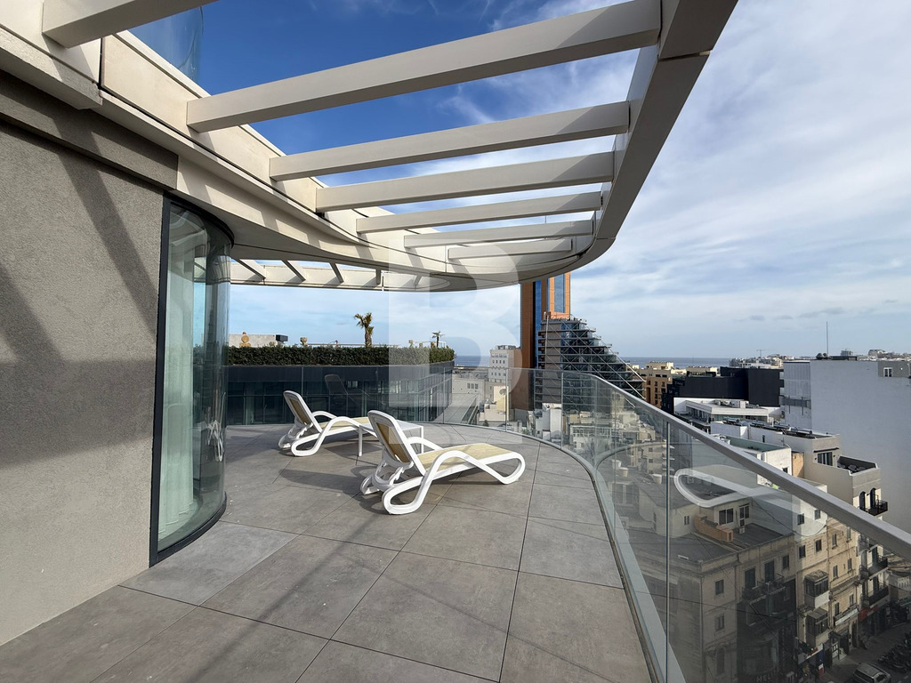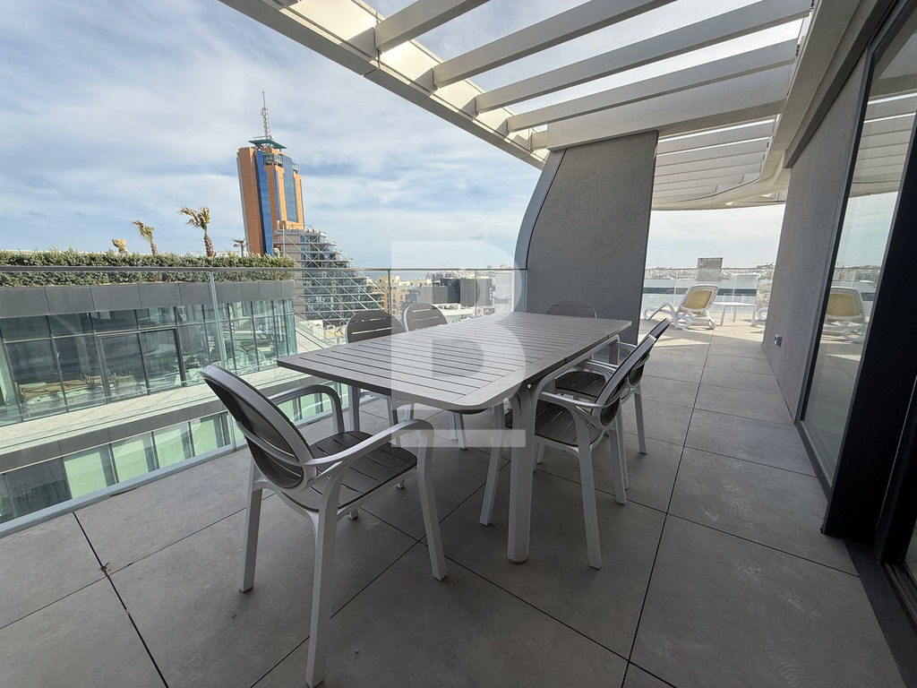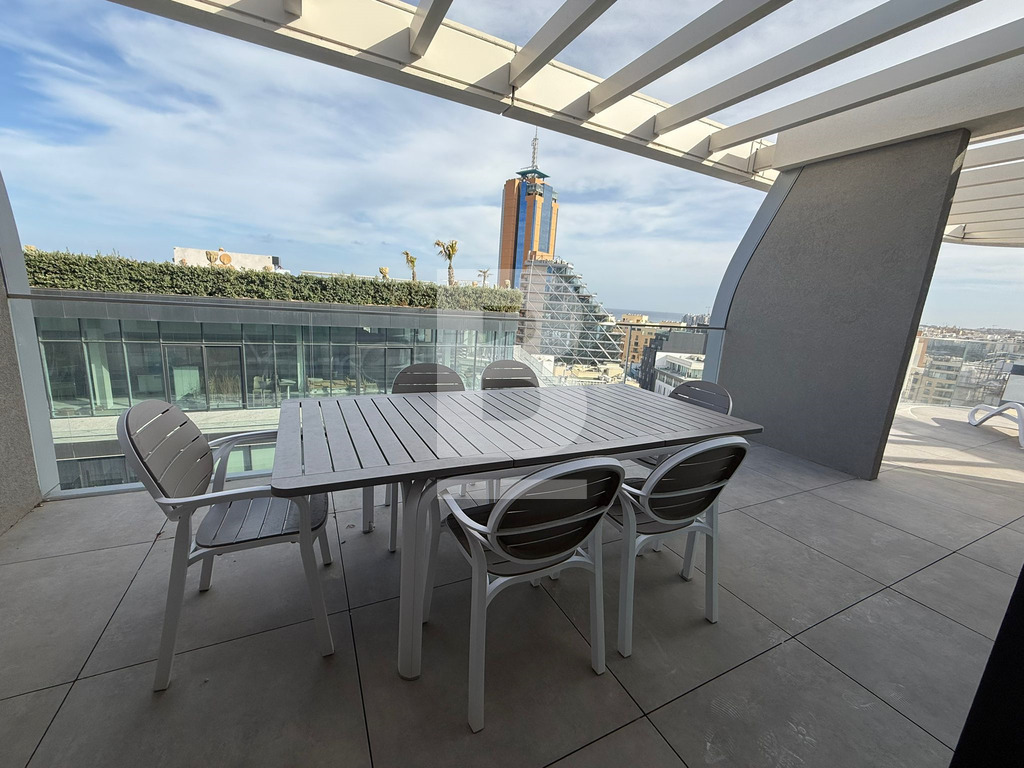 Presenting a stylish fully furnished penthouse in the sought-after Mercury House development, St Julians. This one-bedroom residence is set on the 8th floor and offers a total area of 134 sqm, with a well-balanced internal space of 66 sqm and an impressive 68 sqm external terrace. The open-plan layout seamlessly connects the kitchen, dining, and living areas, creating a bright and inviting atmosphere ideal for both relaxation and entertaining. The bedroom features its own en-suite bathroom, ensuring privacy and comfort. The highlight of this property is the expansive terrace, perfect for enjoying outdoor living and taking in the vibrant surroundings of this lifestyle development. Served by a lift, this penthouse is an excellent choice for those seeking convenience, comfort, and a prime location in St Julians. Ideal as a residence or a high-quality rental investment.