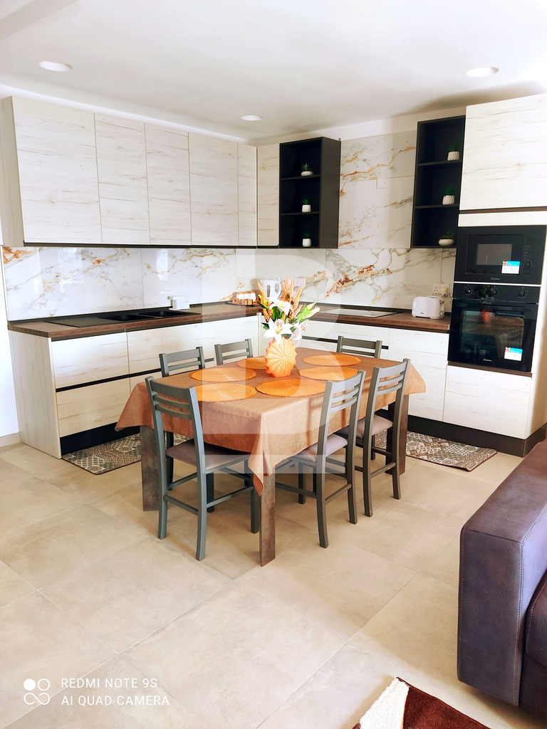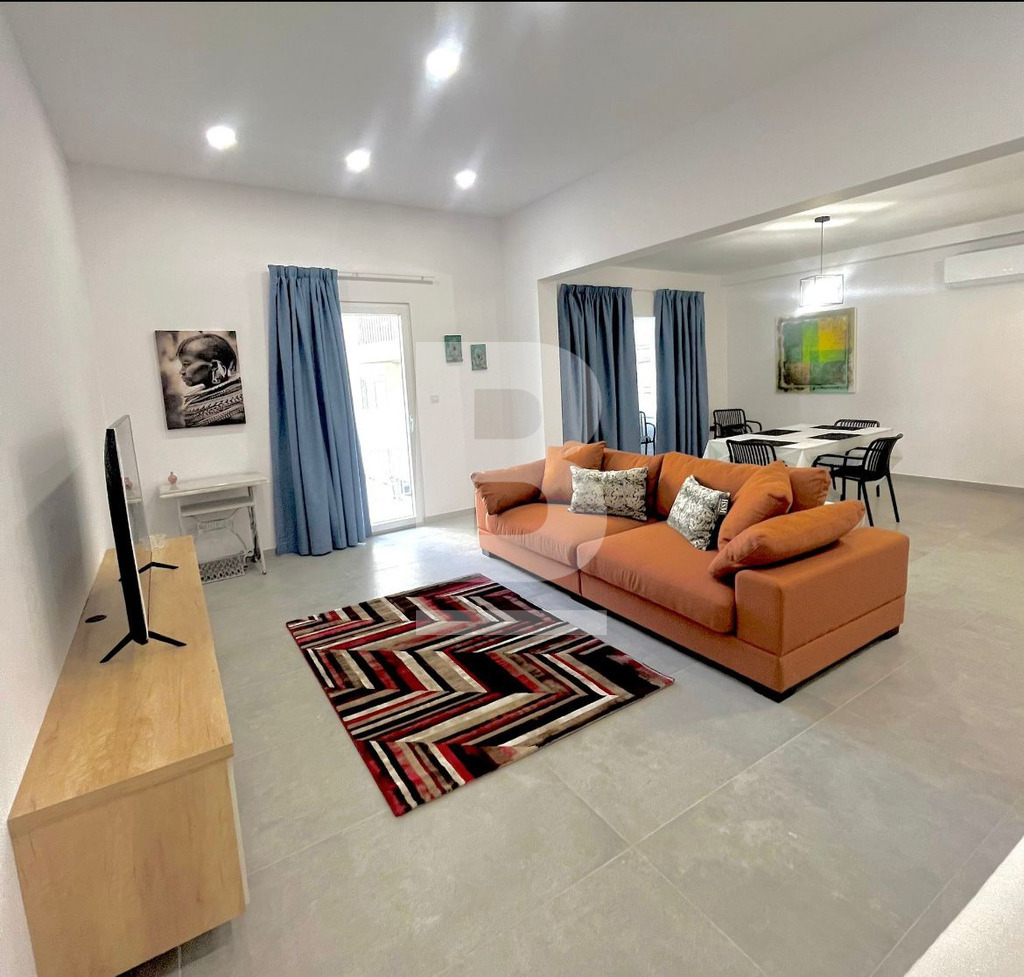 Fully furnished 3rd floor Apartment in Zebbug offering an open plan kitchen living and dining area leading onto a front terrace, enjoying country views, two double bedrooms, main with an ensuite shower room, a main bathroom, and a utility room.