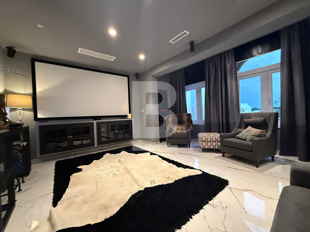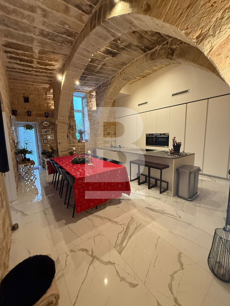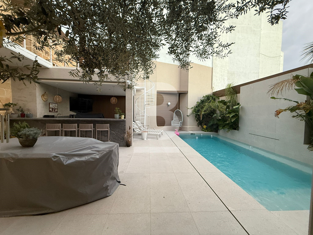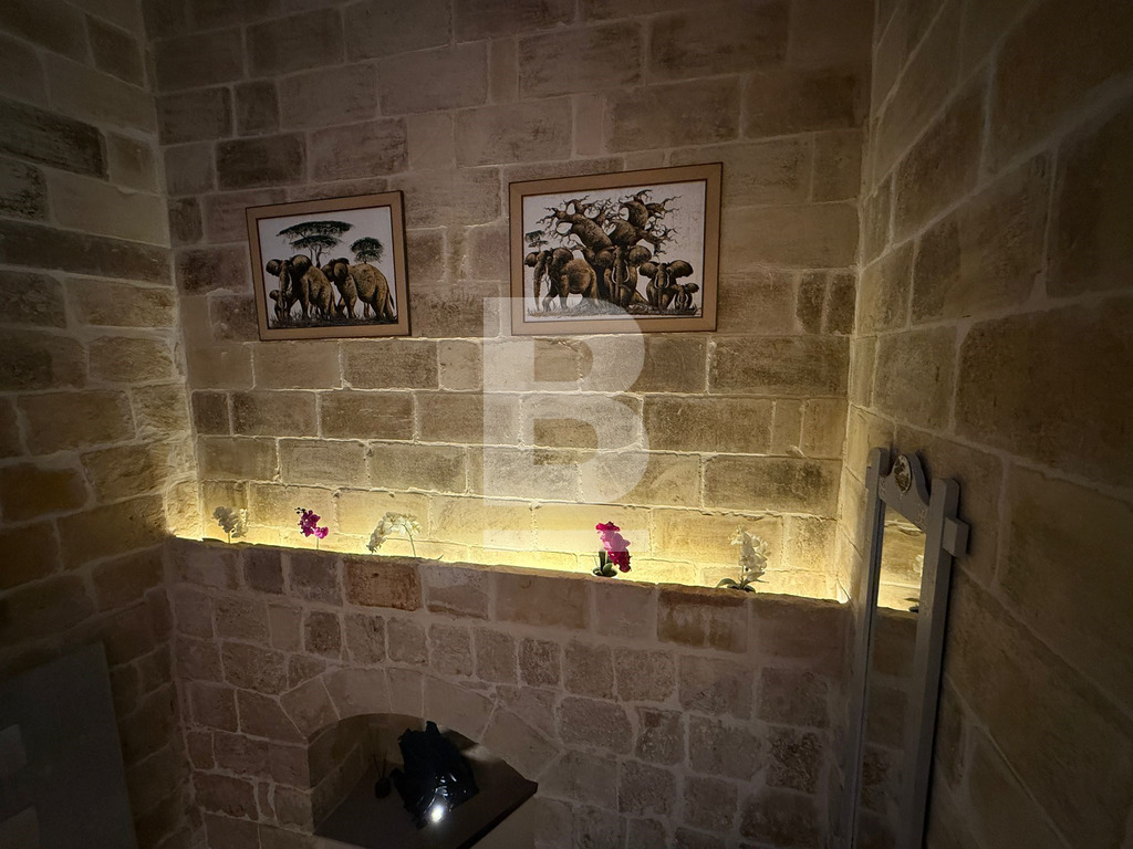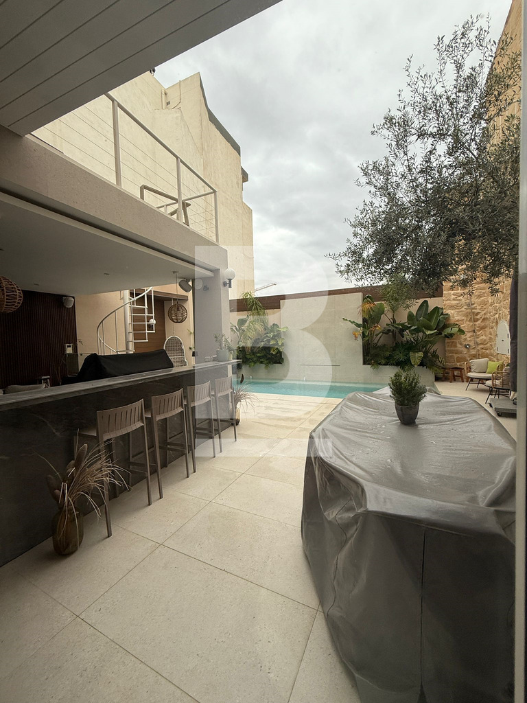 Exclusive Farmhouse in Qrendi. Tucked away at the end of a peaceful Alley, this exceptional semi-detached farmhouse in the picturesque town of Qrendi offers a rare opportunity to own a residence that defines elegance, space, and luxury. Every detail is crafted with precision, blending timeless Maltese character with refined modern comforts. As you enter the hallway, the home’s distinctive nature unfolds—a tranquil music room welcomes you on one side, balanced by a beautifully designed wine and whiskey cellar room on the other, both overlooked by a refined cosy home office. Step further to experience the sweeping living area, where seven-meter-high ceilings create an unforgettable sense of drama and grandeur. The ground floor also features a hidden storeroom, a comfortable double bedroom, a bathroom, and a fully equipped kitchen and dining room with an adjoining original featured broom room, ensuring convenience and ease of living. The kitchen and living rooms flow into a remarkable outdoor retreat, purpose-built for relaxation and entertaining. Here you’ll discover an indoor/outdoor lounge, a stylish outdoor kitchen, a generous heated swimming pool, a pump room, and three underground rooms used as reservoir connected chambers—every element designed to elevate comfort and hosting experiences. Upstairs, a welcoming landing serves as a secondary living space and leads to a private cinema and a versatile main bathroom, easily convertible into yet another luxury suite. Moving higher, two expansive double bedrooms await, each with its own walk-in wardrobe and private ensuite, delivering exceptional privacy and style. The uppermost level reveals an open terrace featuring a kitchen, laundry room, and bathroom—ideal for open-air dining or sunset relaxation. With permits secured for an additional room and an indulgent spa, further expansion awaits for those who dream big. This 21-room farmhouse stands as a signature of refined living, offering vast proportions and exceptional design throughout. Situated in one of Malta’s most sought-after localities, it is a rare find for those who desire comfort, privacy, and a uniquely sophisticated lifestyle.