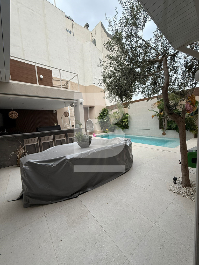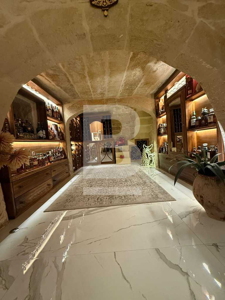Exclusive Farmhouse in Qrendi. Tucked away at the end of a peaceful Alley, this exceptional 21-room semi-detached farmhouse in the picturesque town of Qrendi offers a rare opportunity to own a residence that defines elegance, space, and luxury. Every detail is crafted with precision, blending timeless Maltese character with refined modern comforts. As you enter the hallway, the home’s distinctive nature unfolds—a tranquil music room welcomes you on one side, balanced by a beautifully designed wine and whiskey cellar room on the other, both overlooked by a refined cosy home office. Step further to experience the sweeping living area, where seven-meter-high ceilings create an unforgettable sense of drama and grandeur. The ground floor also features a hidden storeroom, a comfortable double bedroom, a bathroom, and a fully equipped kitchen and dining room with an adjoining original featured broom room, ensuring convenience and ease of living. The kitchen and living rooms flow into a remarkable outdoor retreat, purpose-built for relaxation and entertaining. Here you’ll discover an indoor/outdoor lounge, a stylish outdoor kitchen, a generous heated swimming pool, a pump room, and three underground rooms used as reservoir connected chambers—every element designed to elevate comfort and hosting experiences. Upstairs, a welcoming landing serves as a secondary living space and leads to a private cinema and a versatile main bathroom, easily convertible into yet another luxury suite. Moving higher, two expansive double bedrooms await, each with its own walk-in wardrobe and private ensuite, delivering exceptional privacy and style. The uppermost level reveals an open terrace featuring a kitchen, laundry room, and bathroom—ideal for open-air dining or sunset relaxation. With permits secured for an additional room and an indulgent spa, further expansion awaits for those who dream big. This 21-room farmhouse stands as a signature of refined living, offering vast proportions and exceptional design throughout. Situated in one of Malta’s most sought-after localities, it is a rare find for those who desire comfort, privacy, and a uniquely sophisticated lifestyle.