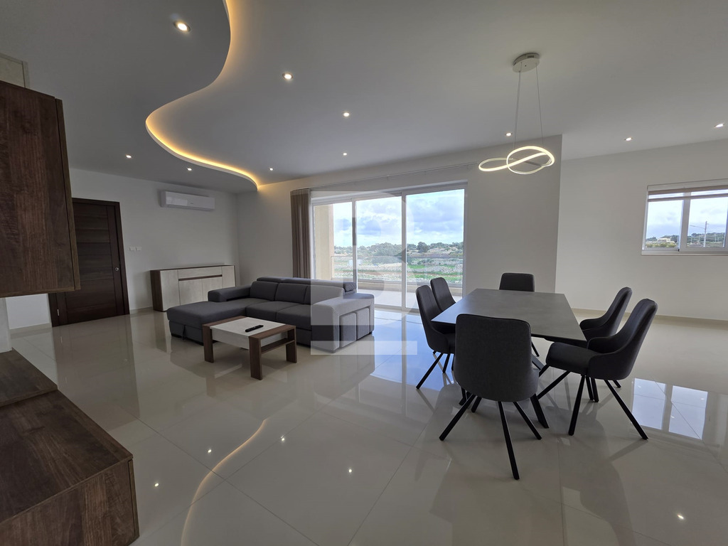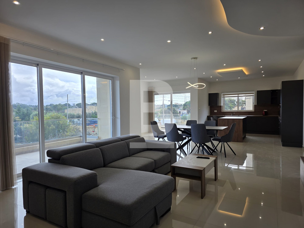 NEW ON THE MARKET!! 200sqm Corner Apartment in the Quiet Rural Location of Hal-Safi. Highly finished and furnished, this massive property presents 3 double bedrooms, 2 bathrooms ( 1 being en-suite ), a fully equipped larger than usual open plan kitchen, living and dining area including a dishwasher and surrounded with 2 front balconies and a side terrace truly optimizing outdoor living spaces and ensuring that the apartment is flooded with natural light while overlooking ODZ fields!. Additionally, one has a washroom with a washing machine, tumble dryer and storage space for added convenience. This property is fully air-conditioned, situated on the 1st floor with lift service and located within walking distance of grocery shops, pharmacies and bars.