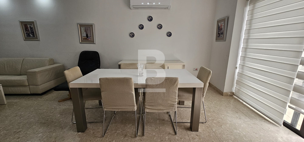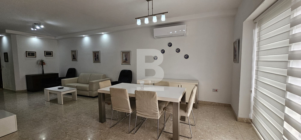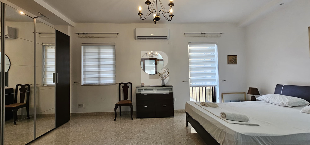 A spacious apartment located just off Sliema's promenade and public garden, is this large apartment being offered to a couple or family, wanting to reside in one of Malta's prominent residential area. It's large open plan living / dining / kitchen area leads onto the front balcony with side sea views, a designated home office / study are is ready furnished for those wanting to work from home. The two double bedrooms each have their private back terrace, with the master bedroom having it's private en-suite facilities, whilst the second bedroom leads to a large laundry area (semi covered area) the ideal additional space also suitable for yoga practices, arts and similar activities. A main bathroom serves the rest of the house. An optional lock up garage can be made available at an additional rental charge.