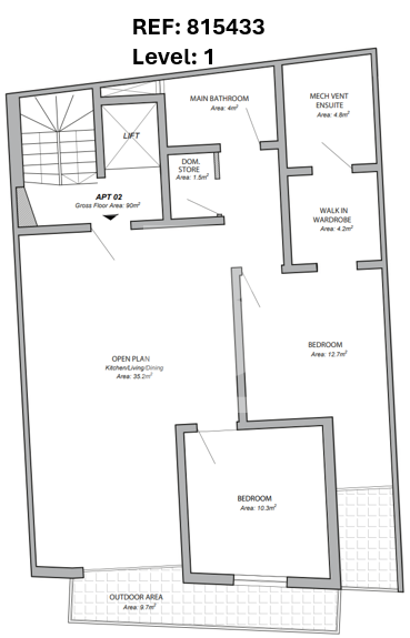 Situated in a Residential Street of Qormi, in a block of just 6 units, comes this 1st-Floor Apartment enjoying a squarish layout. Comprising 2 generously-sized bedrooms, a lovely larger-than-usual open plan kitchen, living and dining area with a main bathroom, domestic store, en-suite bathroom and walk-in-wardrobe with the master bedroom. Property is currently on plan and expected to start works from early 2026 being offered FREEHOLD and semi-finished ( excluding bathrooms and internal doors ). A perfect rental investment!