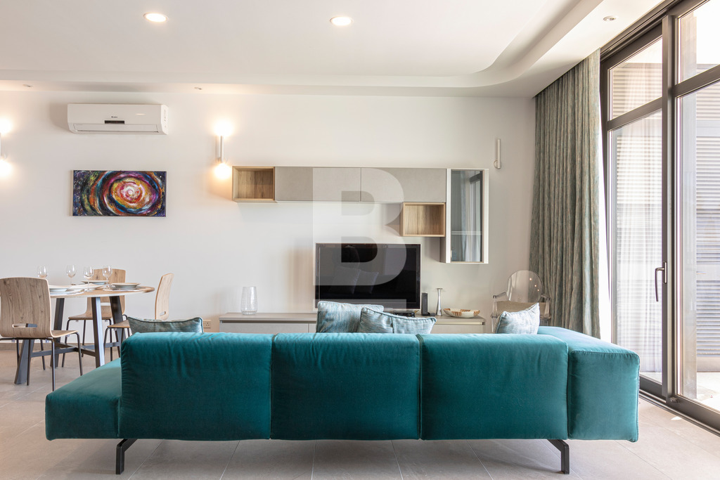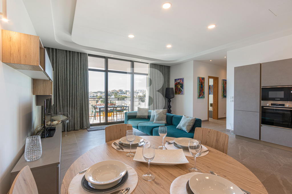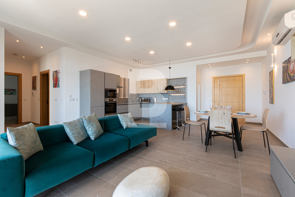 Aesthetically Designed 2 Double Bedroom Corner Apartment in a Special Designated Area ( SDA ) of St. Julian's. The Apartment is finished and furnished to the utmost high of standards! Comprising 2 bathrooms ( 1 en-suite ), a fully equipped open plan kitchen, living and dining area including a dishwasher, side balcony with coffee table and chairs for relaxing mornings or winding down in the evenings as well as a sizeable front terrace enjoying outdoor dining furniture, country views and distant sea views. The property further features a central air-conditioning/heating system, lift service through out the block ( apartment is on the 5th floor ), washing machine and tumble dryer, and is additionally boasted with tons of natural light. Close by to restaurants, shopping complexes, Supermarkets, cafe's, business centres and more... A unique kind of property with true value!